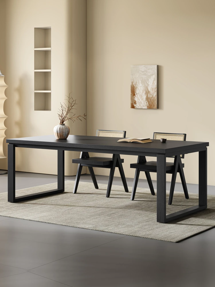 無垢材のブラック侘寂スタイル、ホワイトアッシュの大判ダイニングテーブル|モダンでシンプルな長方形デザイン|リビングや書斎に最適!高級感と温もりを兼ね備えた一品。