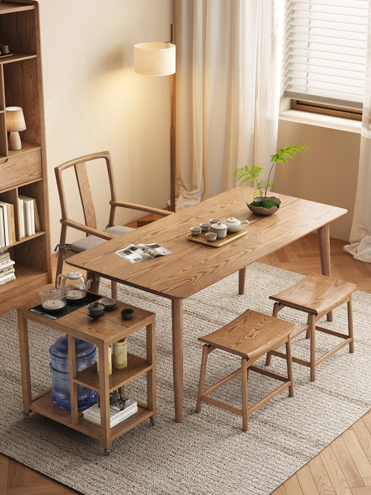 無垢材のモダンシンプルな茶卓 - 干泡茶台とダイニングテーブルの2WAY仕様!家庭用ホワイトアッシュ材のミッドセンチュリースタイルのテーブルと椅子のセットで、リラックスしたひとときを演出します。