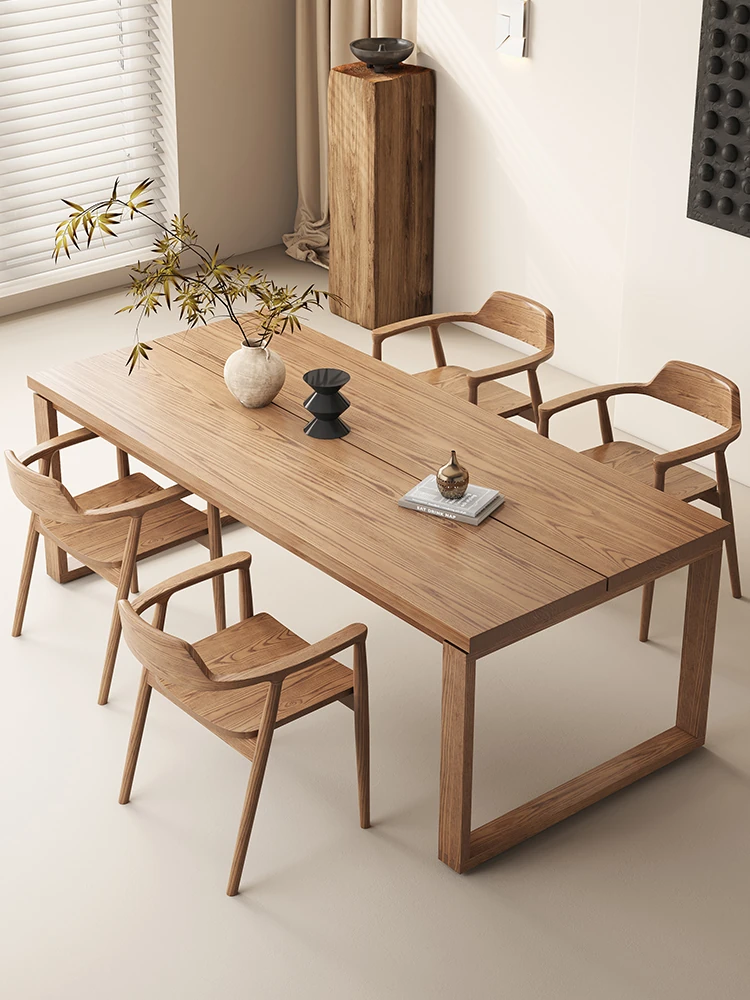 2025年新作!白蜡木の無垢材を使用した、岩板デザインのダイニングテーブルセット。小型住宅に最適なクリーム風の長方形テーブルと椅子のコンビネーションで、スタイリッシュで温かみのある空間を演出します。