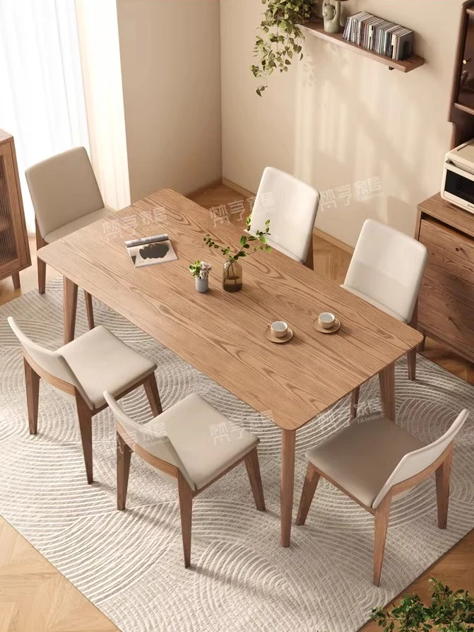 新作!北欧スタイルの全実木ダイニングテーブル - 小型住宅に最適なモダンな長方形デザイン。2025年モデル、デザイン性と機能性を兼ね備えたホワイトアッシュ無垢材の温かみある食卓で、家族団らんのひとときをお楽しみください。