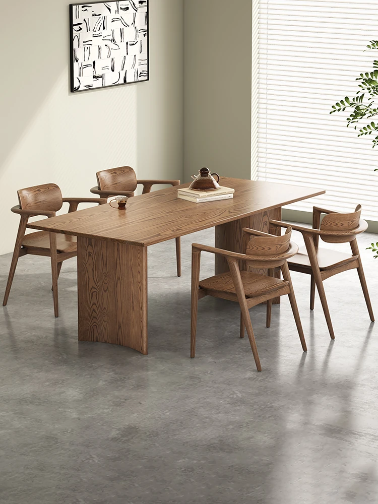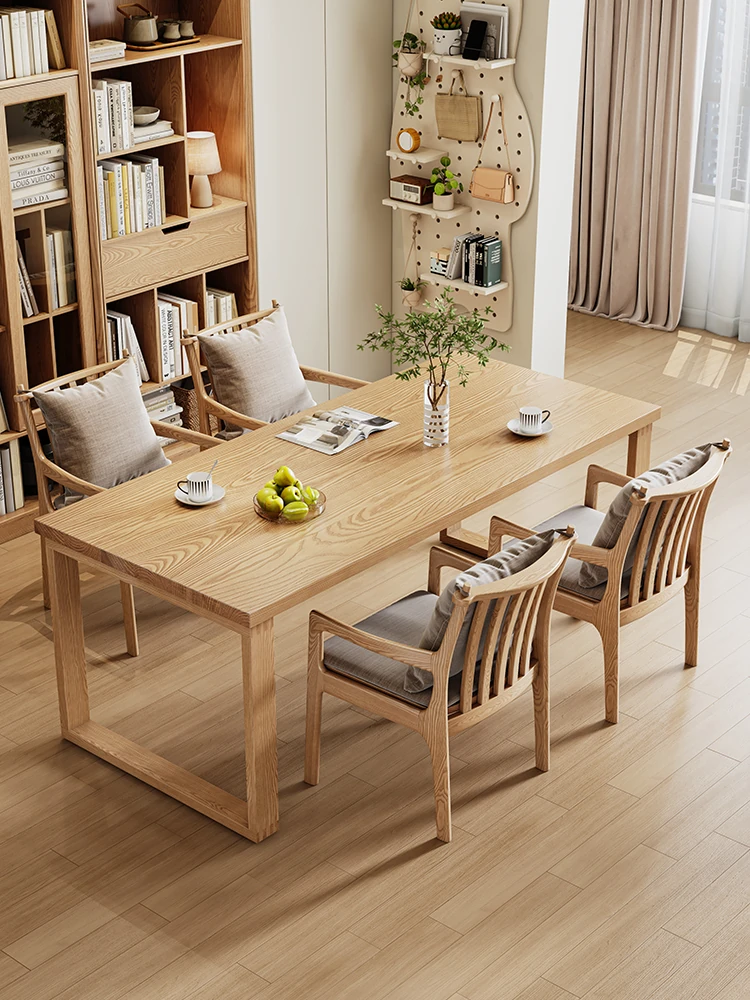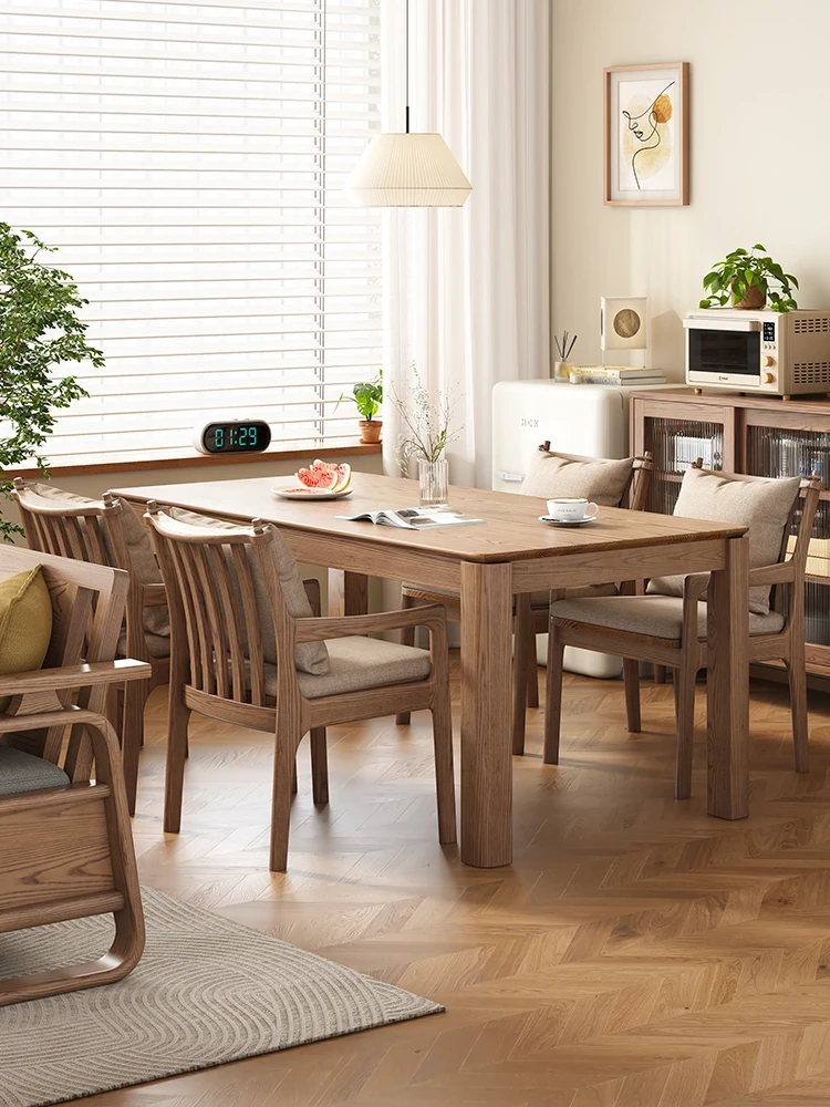 2025年新作!北欧スタイルの無垢材ダイニングテーブル - 小型住宅に最適な長方形デザイン。ホワイトアッシュの大板を使用した高品質なコンピューターデスクで、スタイリッシュな食卓空間を演出します。