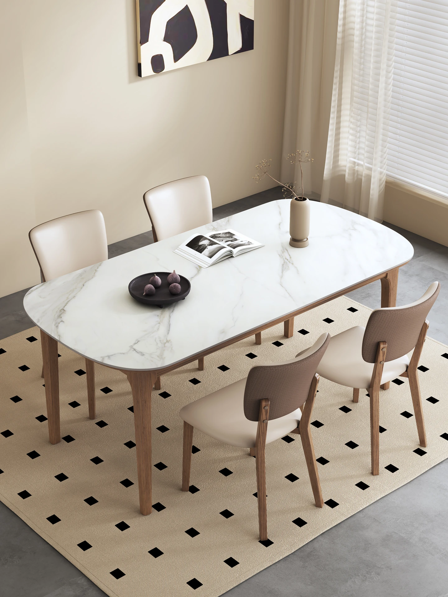 2025年新作!高級感溢れる楕円形の岩板ダイニングテーブル、コンパクトな小型住宅にぴったりのモダンシンプルデザイン。食事の時間を特別に演出する一品!