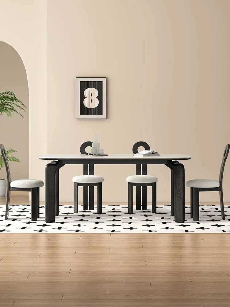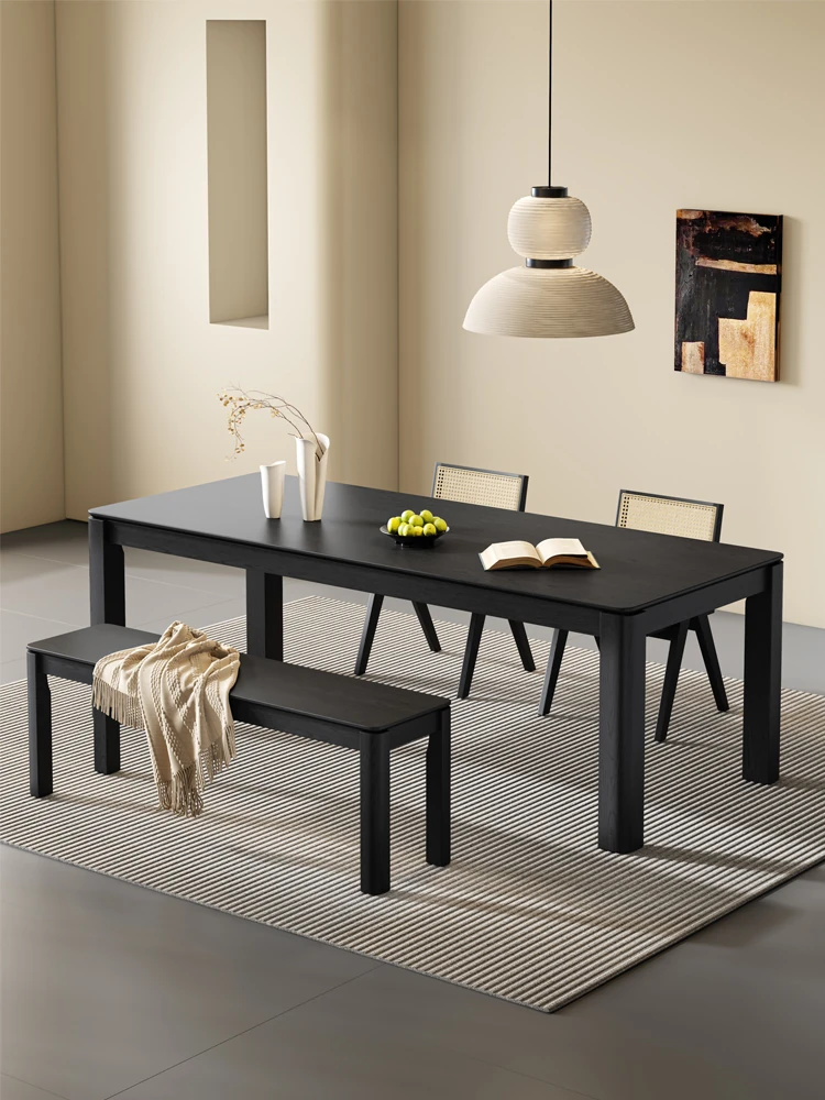 高級感漂う無垢材のロックボードダイニングテーブル - モダンシンプルなホワイトアッシュウッド製、スタイリッシュで落ち着いた印象の黒色長方形テーブル。家族や友人との特別な食事を演出します。