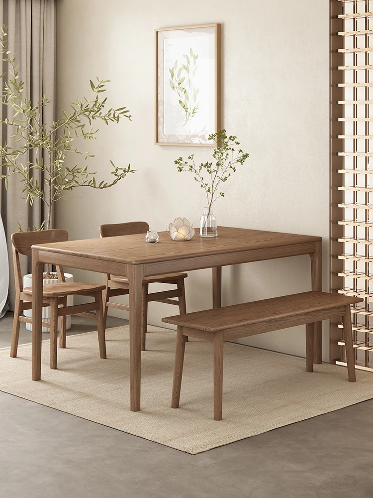 2025年新作!北欧スタイルの無垢材ダイニングテーブルセット - ホワイトアッシュの長方形デザイン、小さなスペースにもぴったり!家庭用に最適なシンプルでスタイリッシュな食卓で、毎日の食事を特別な時間に。