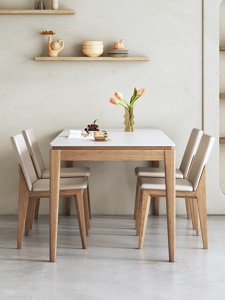 2025 New Modern Minimalist Light Luxury Dining Table Set for Small Spaces - Solid Ash Wood with Elegant Stone Top, Perfect for Stylish Home Dining