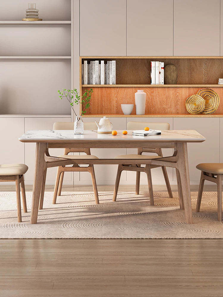 Nordic Solid Wood Dining Table with Rock Slab Top – Modern Minimalist Design, Perfect for Small Spaces, Made of Ash Wood, Rectangular Japanese Style Dining Table for Home Use