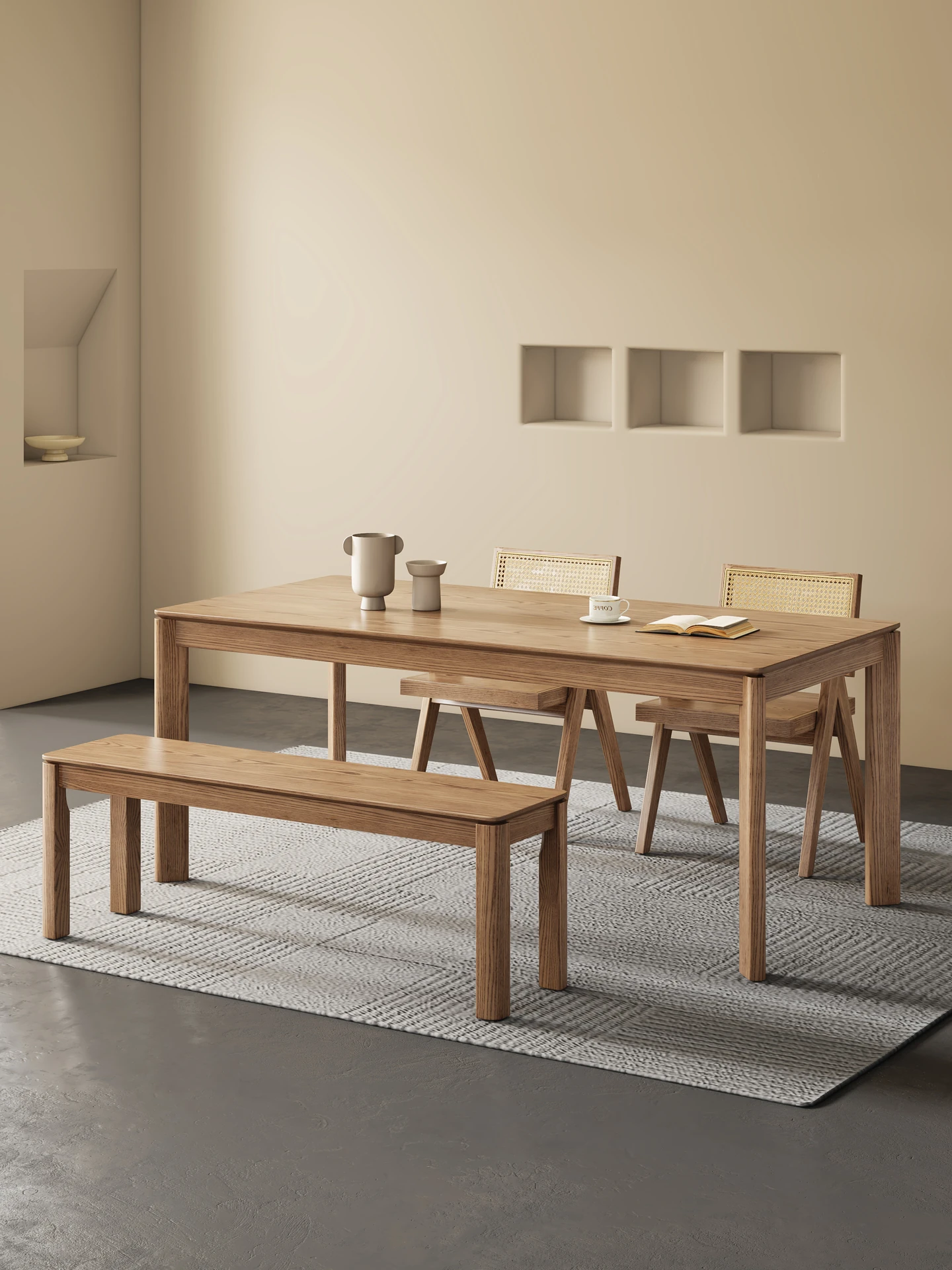 Modern Minimalist Nordic-Japanese Solid Wood Dining Table – Rectangular Ash Wood Large Table for Small Spaces, Perfect for Home and Work
