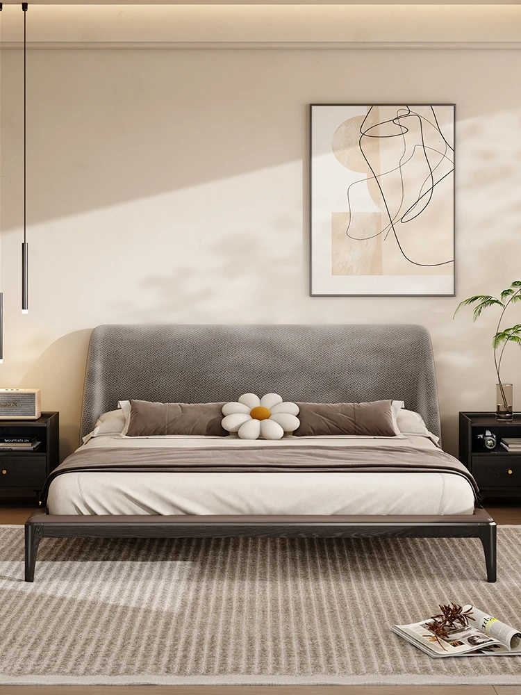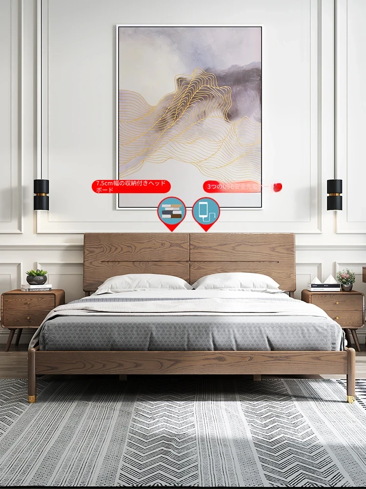 北欧風デザインの高級感溢れる無垢材ダブルベッド—シンプルでモダン、小さなスペースに最適なイタリアンミニマリズムソフトパッケージ仕上げ。あなたの寝室をスタイリッシュに変身させます!