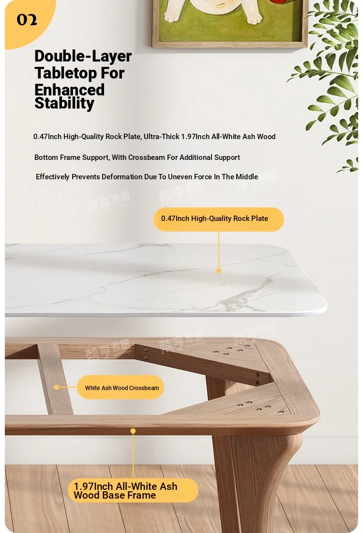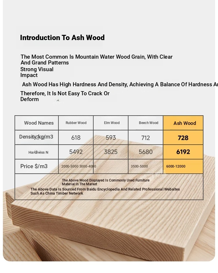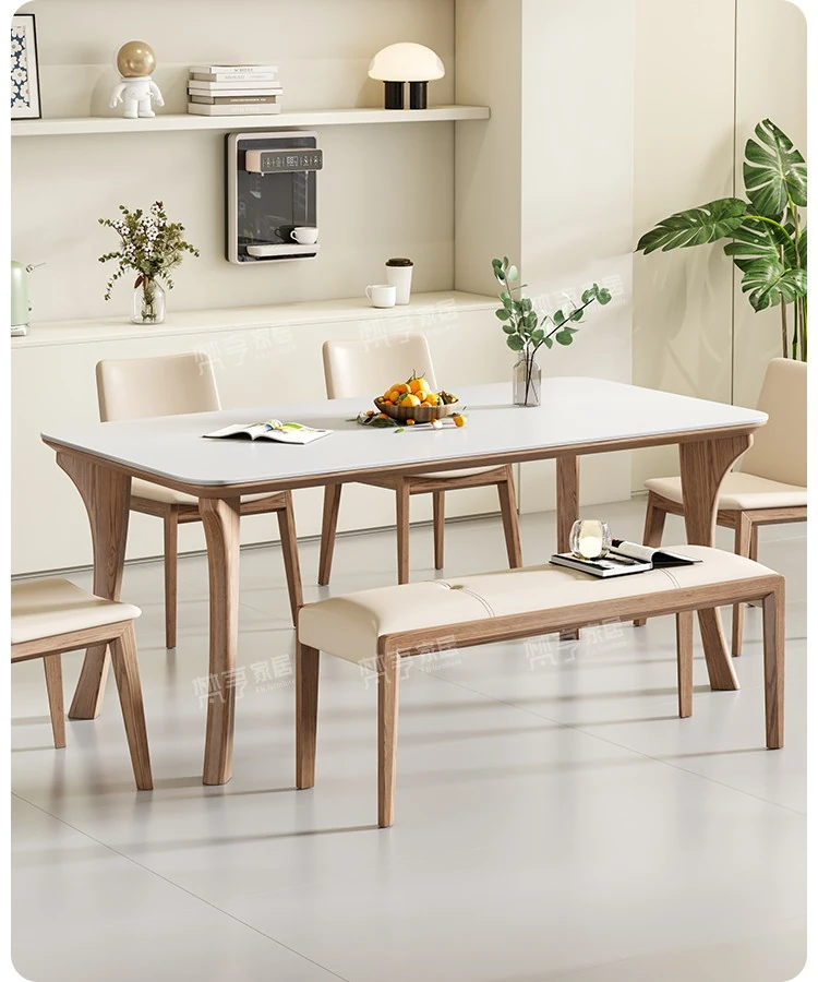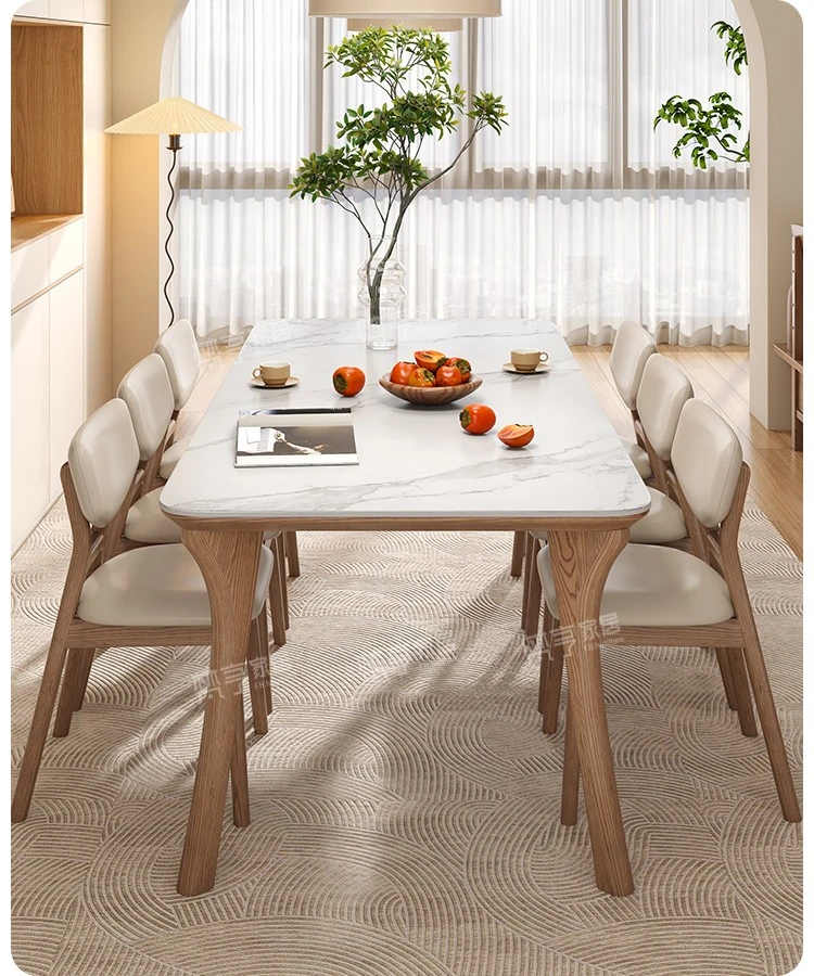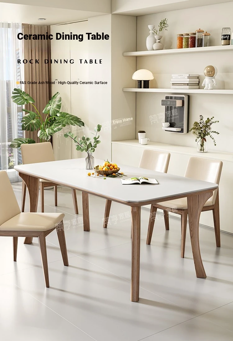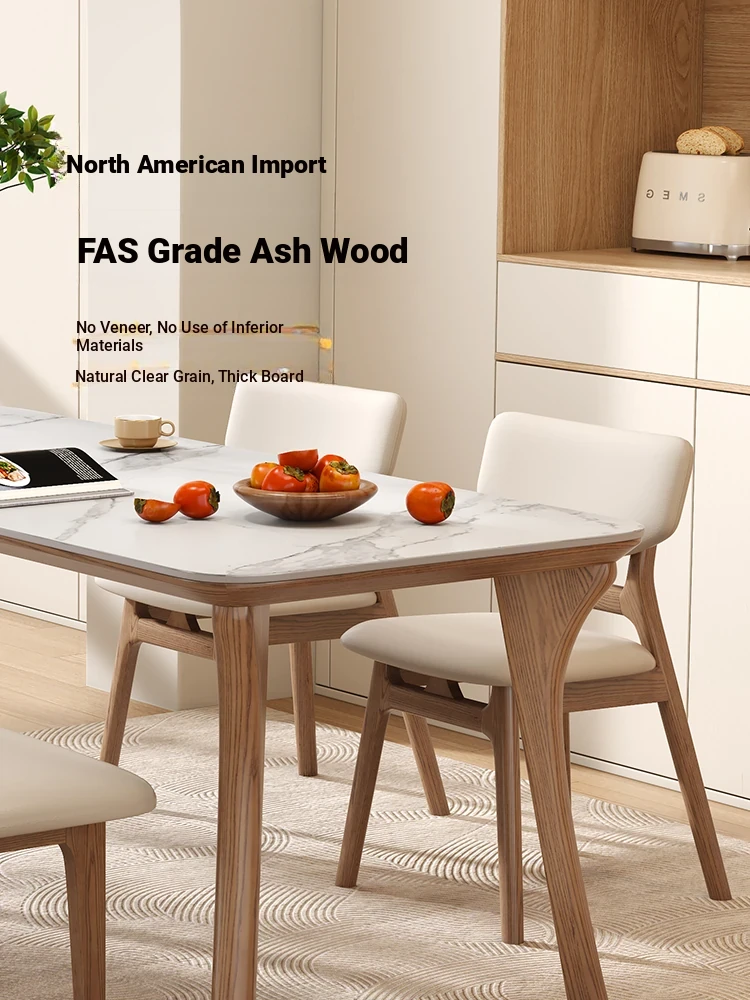 2025 New Luxury Solid Wood Dining Table - Modern Minimalist Rectangular Work Desk for Small Spaces in Ash Wood