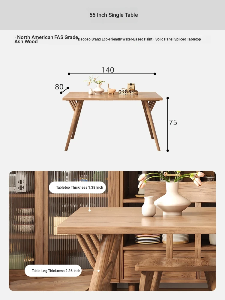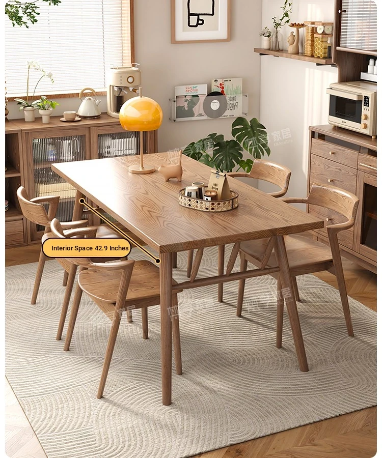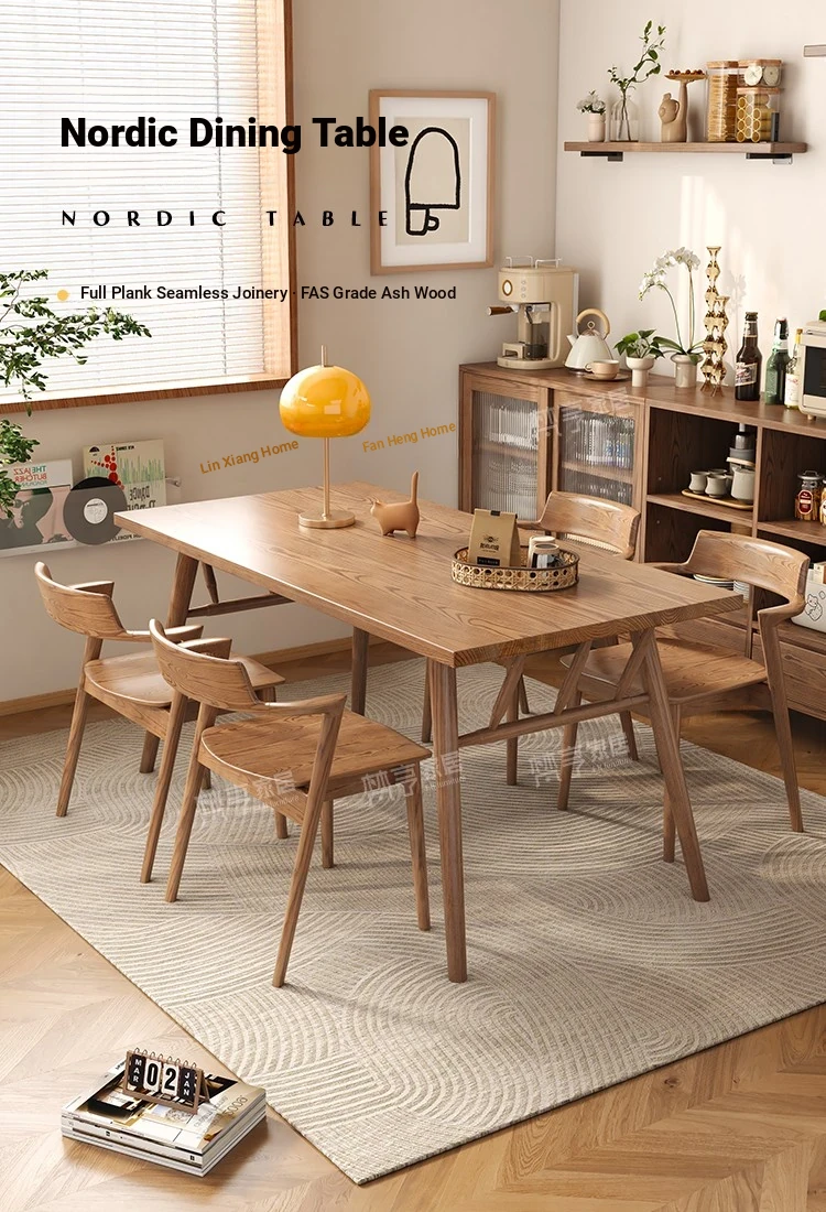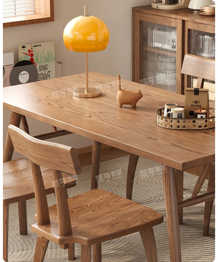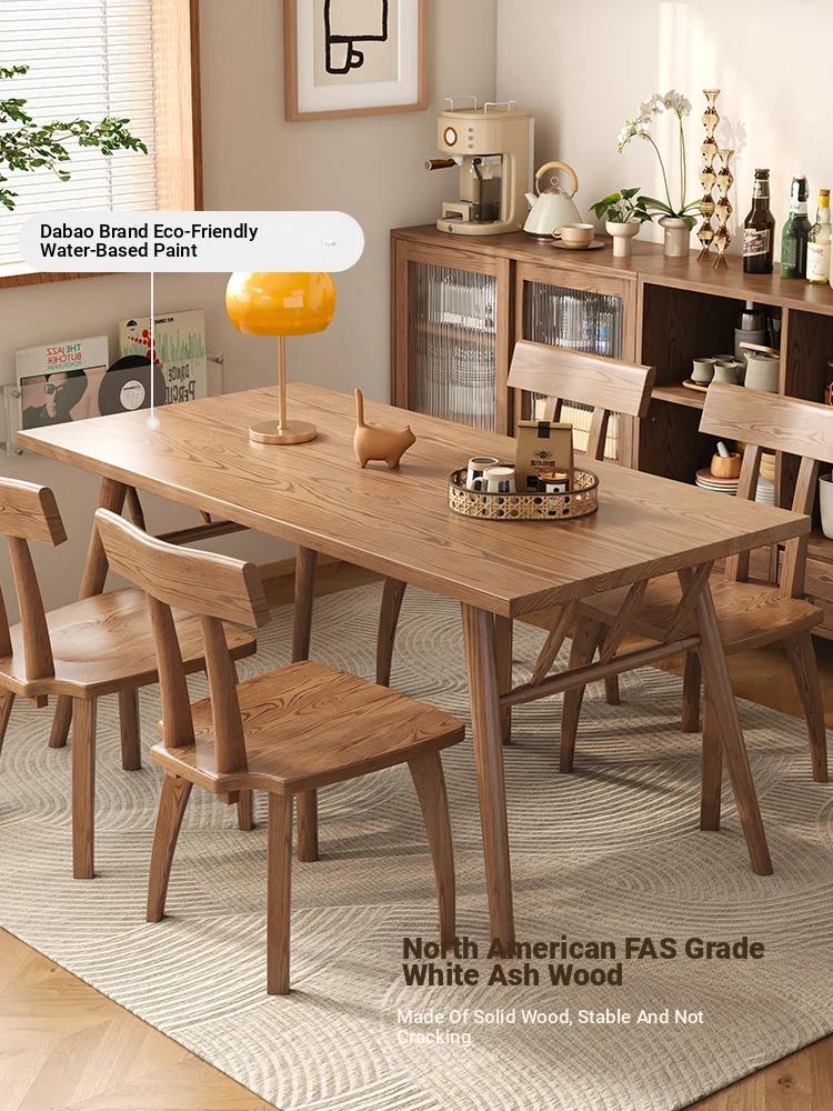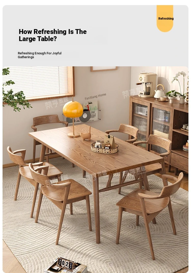 Modern Minimalist Solid Wood Dining Table for Small Spaces - Rectangular Japanese Style with All-White Ash Wood Large Surface, Perfect for Family Meals