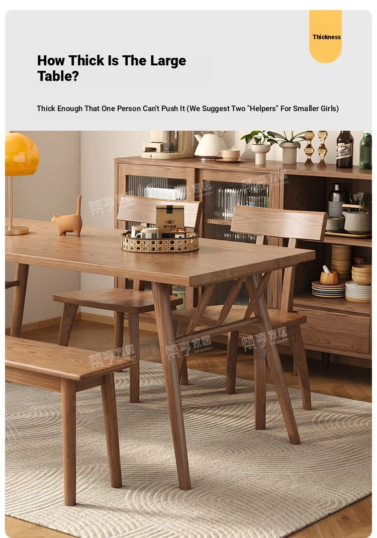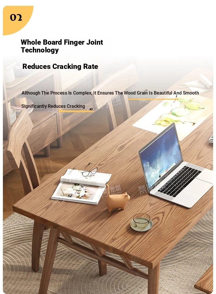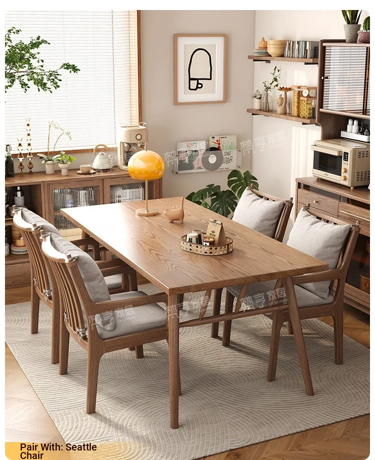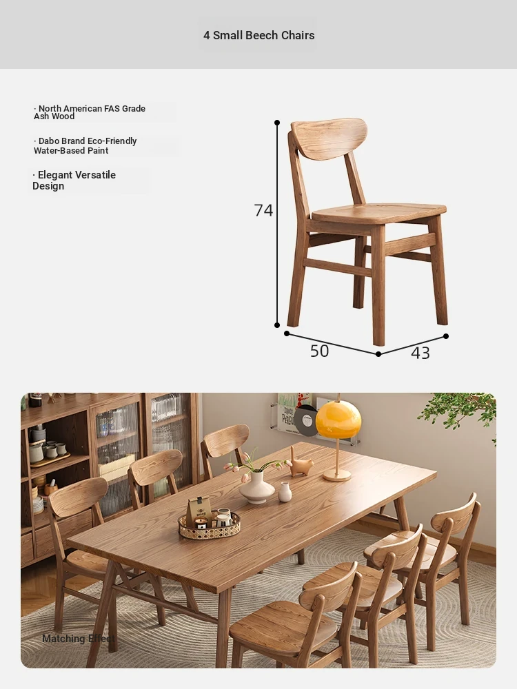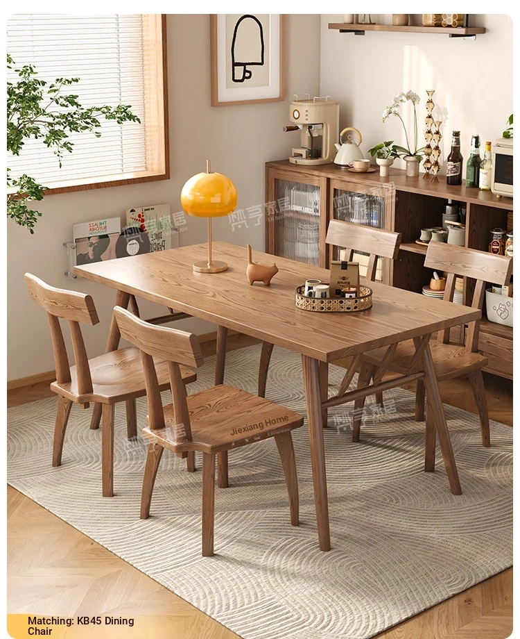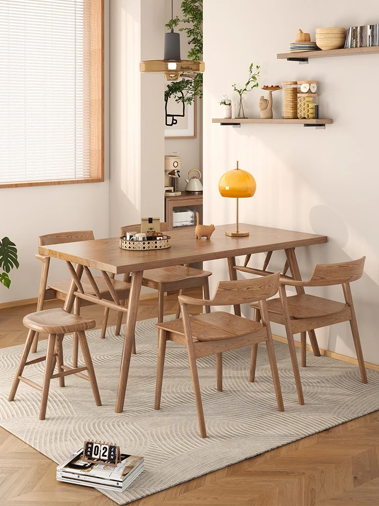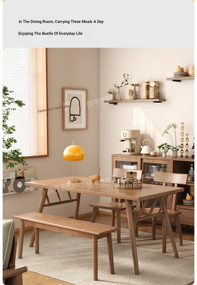 Modern Minimalist Solid Wood Dining Table for Small Spaces - Rectangular Japanese Style with All-White Ash Wood Large Surface, Perfect for Family Meals