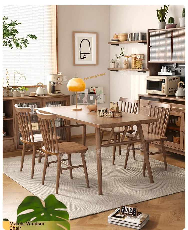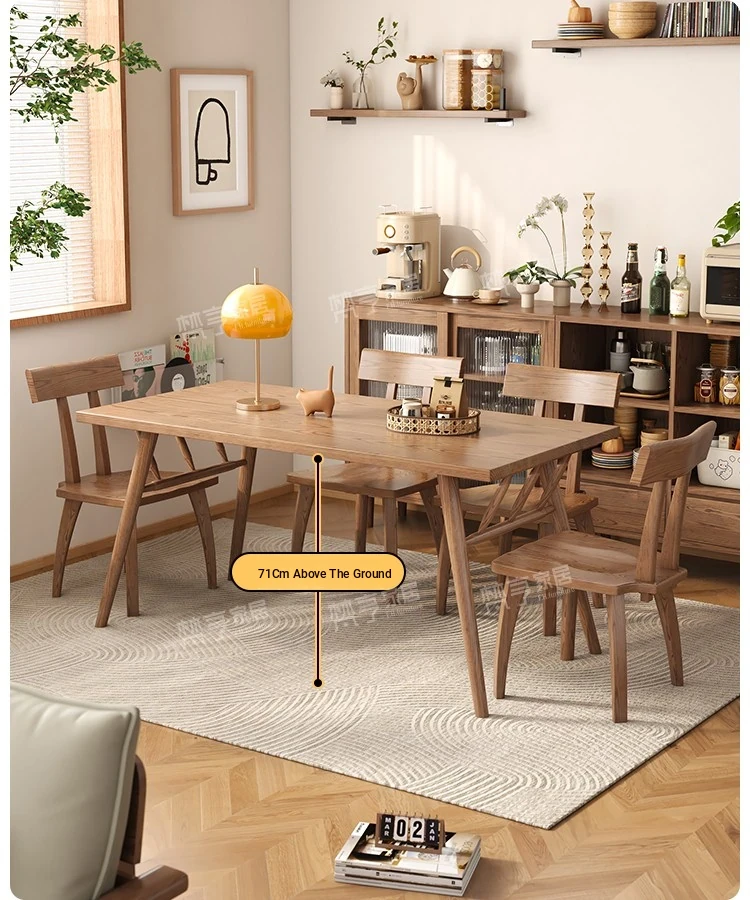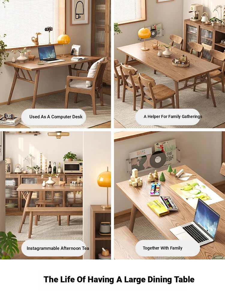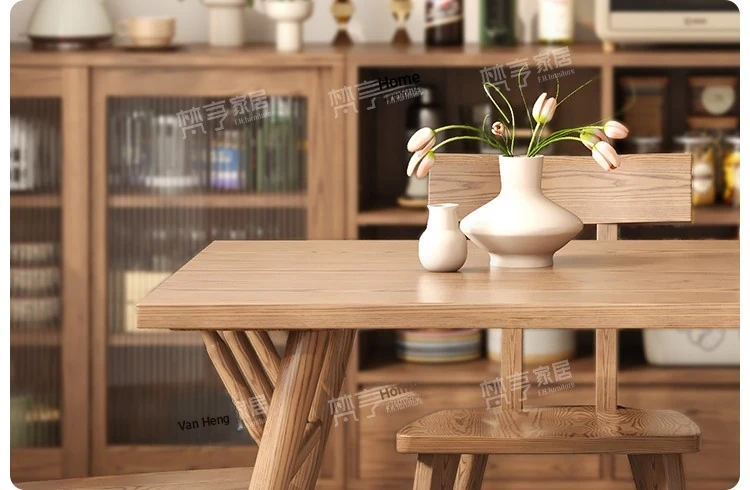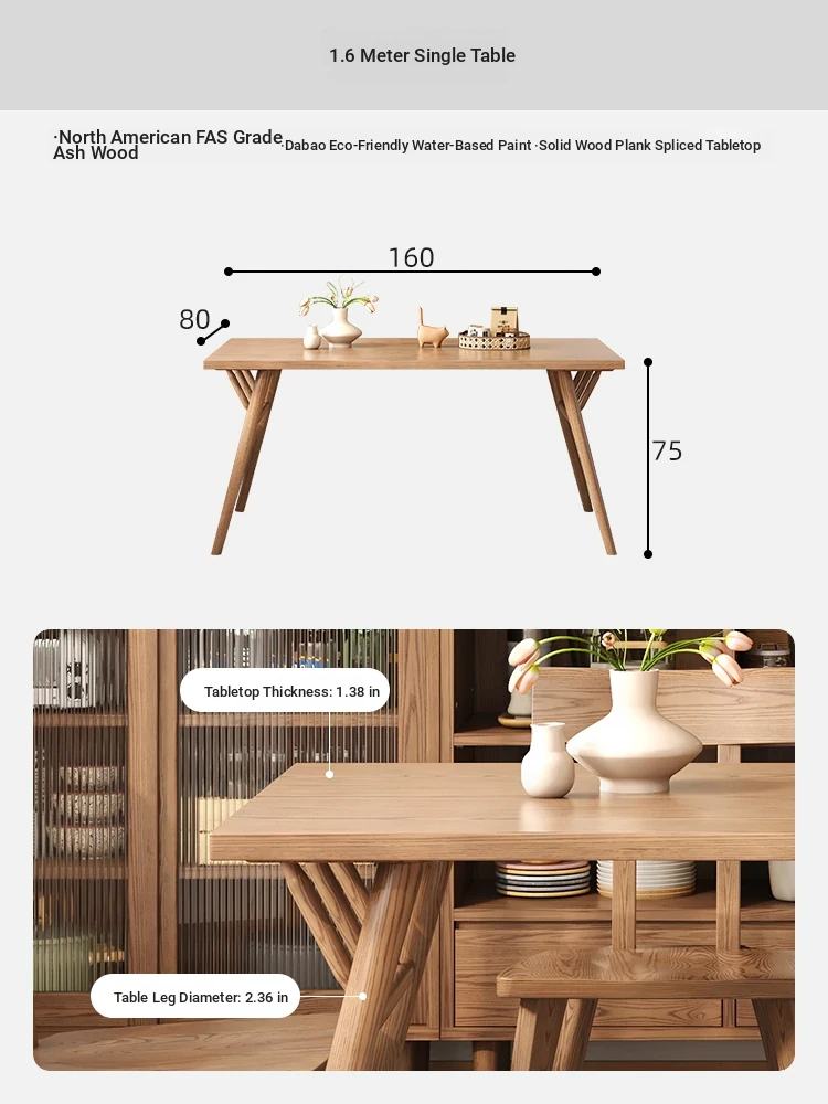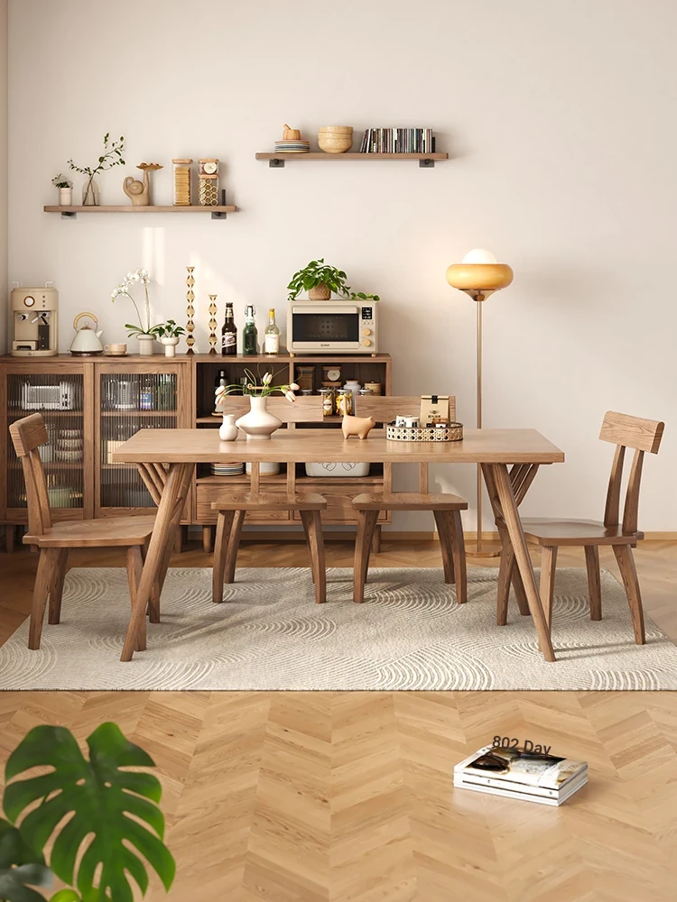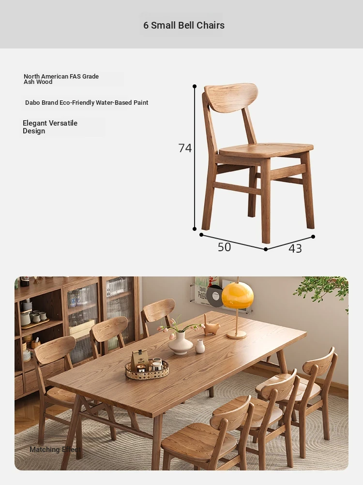 Modern Minimalist Solid Wood Dining Table for Small Spaces - Rectangular Japanese Style with All-White Ash Wood Large Surface, Perfect for Family Meals