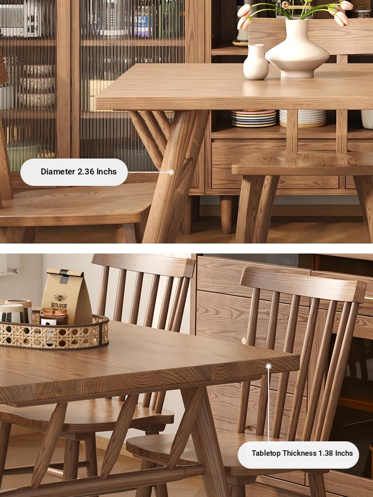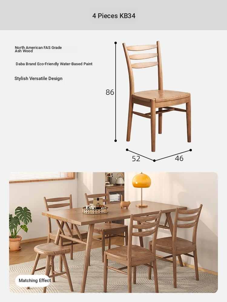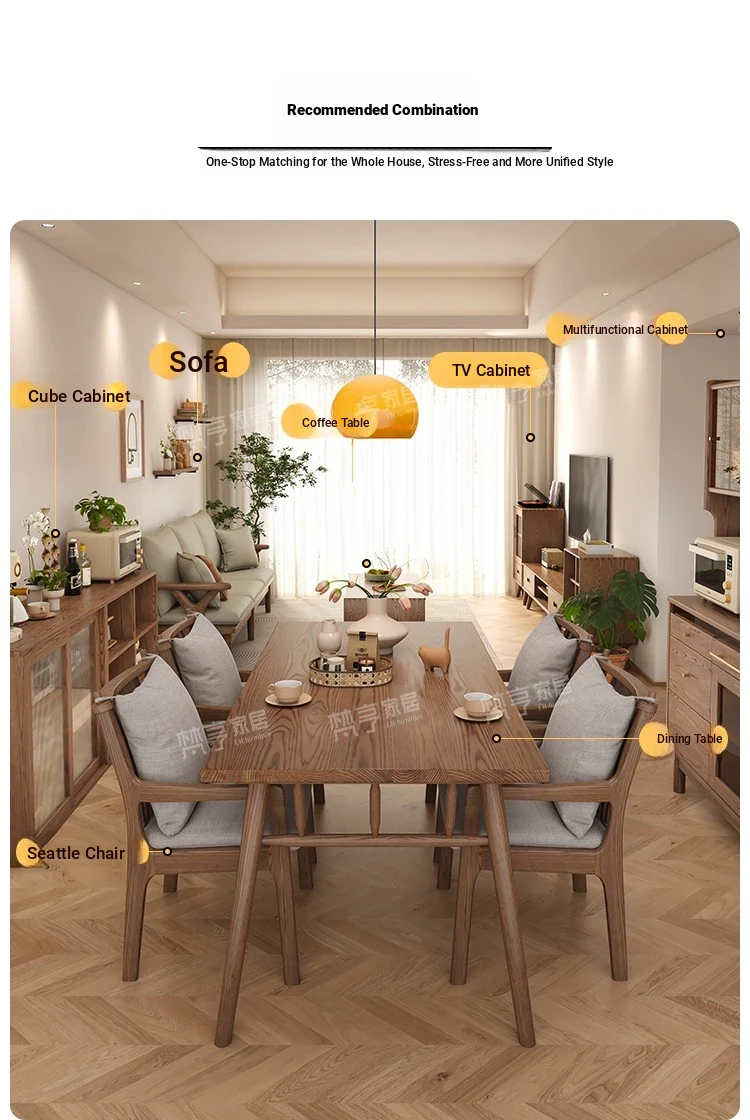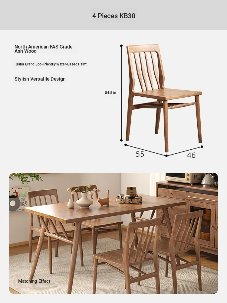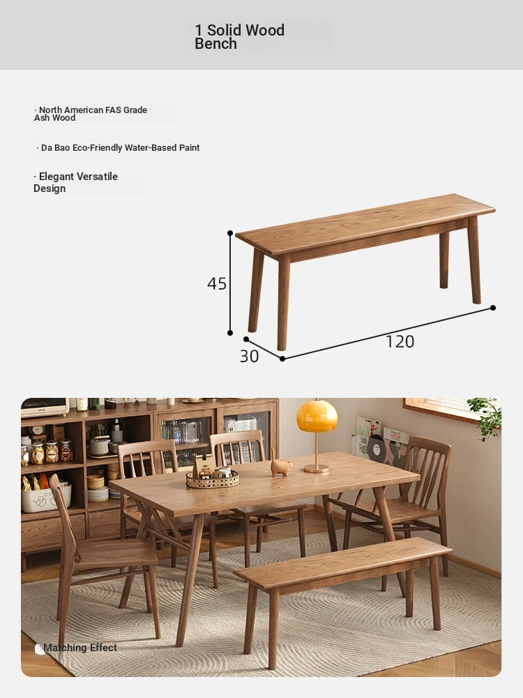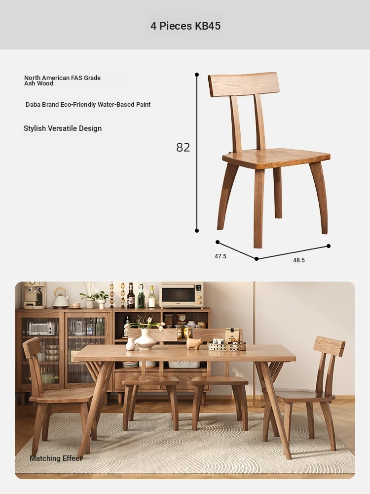 Modern Minimalist Solid Wood Dining Table for Small Spaces - Rectangular Japanese Style with All-White Ash Wood Large Surface, Perfect for Family Meals