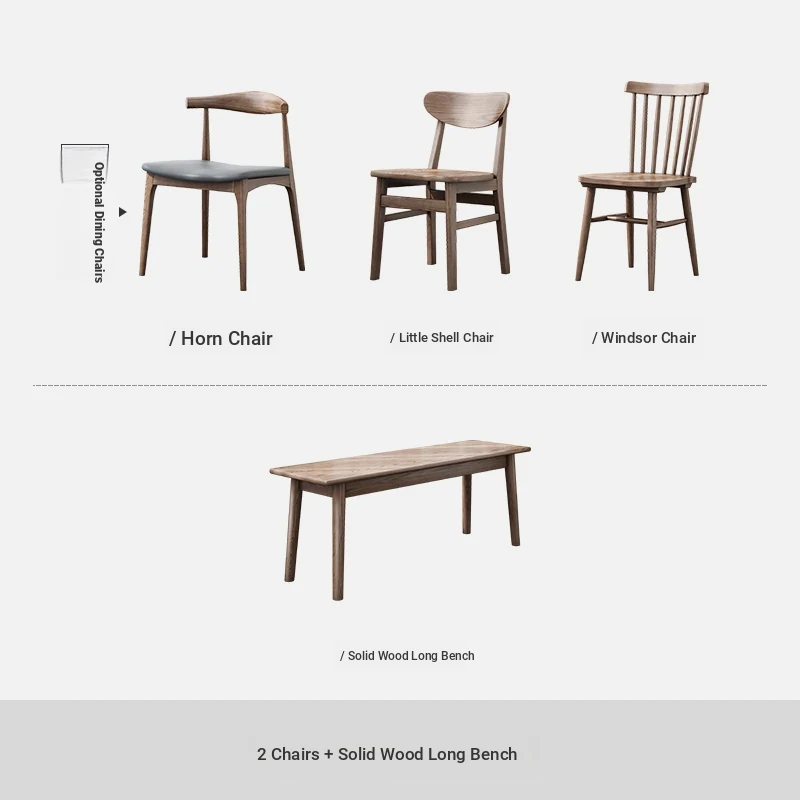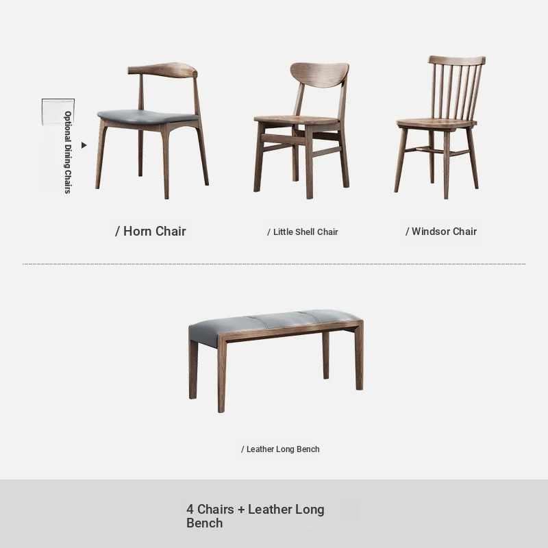 4 chairs +47.24 in long solid wood bench(/CHAIR STYLE OPTIONAL)