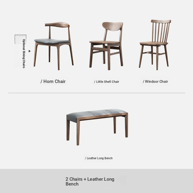 2 Chairs +39.37 in long leather bench(/CHAIR STYLE OPTIONAL)