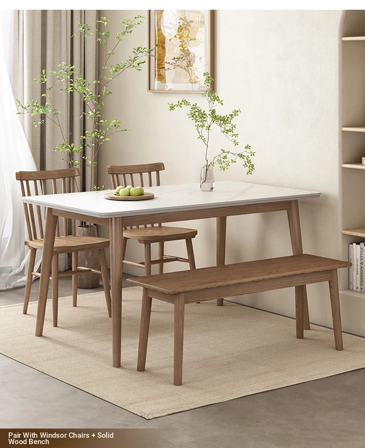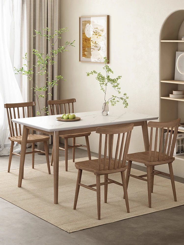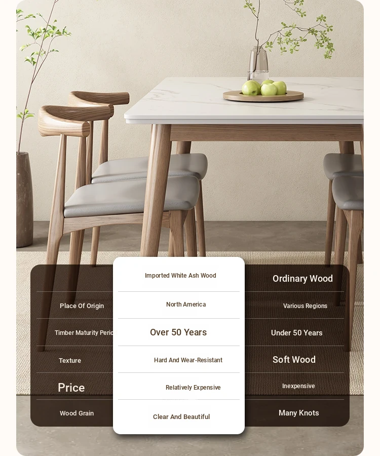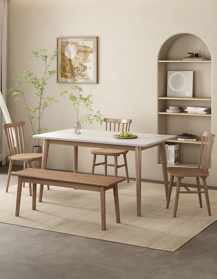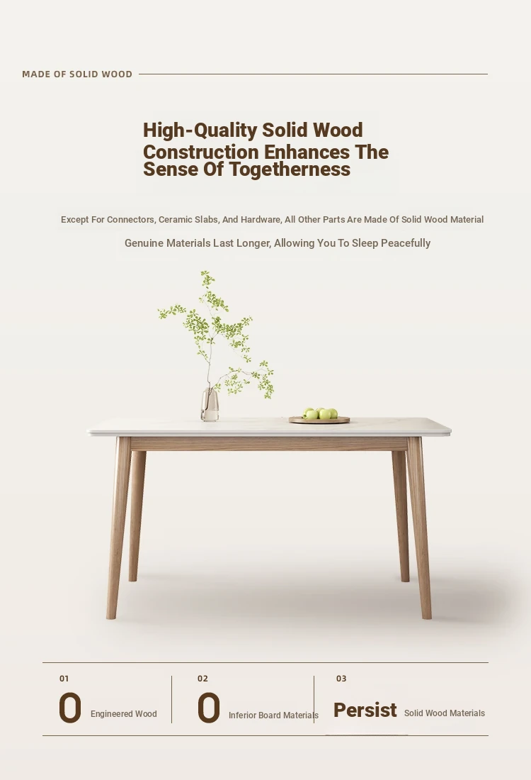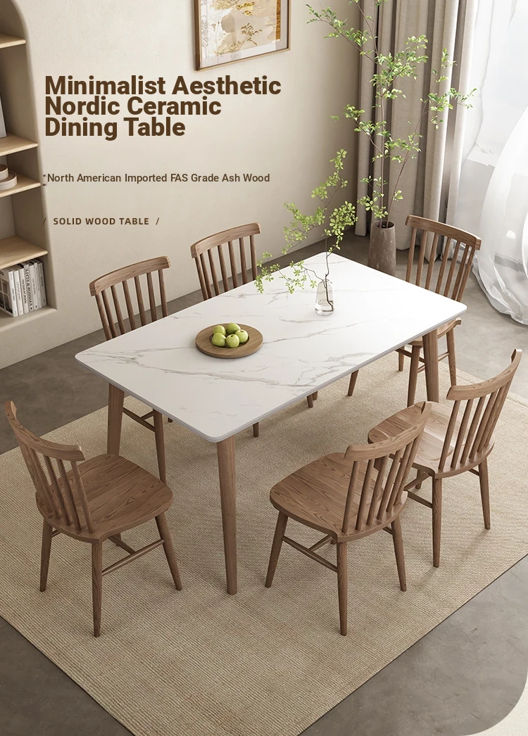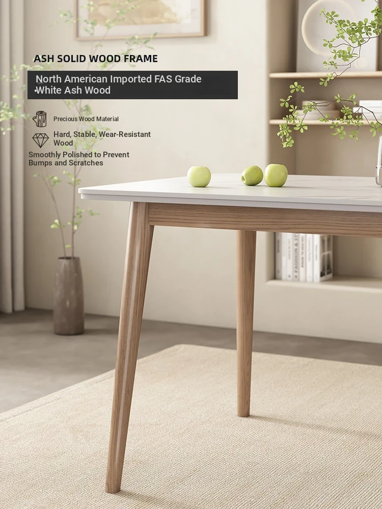 Nordic-Japanese Style Solid Wood Dining Table - Modern Minimalist Rectangular Desk for Small Spaces, Made of White Ash Wood, Perfect for Home Use
