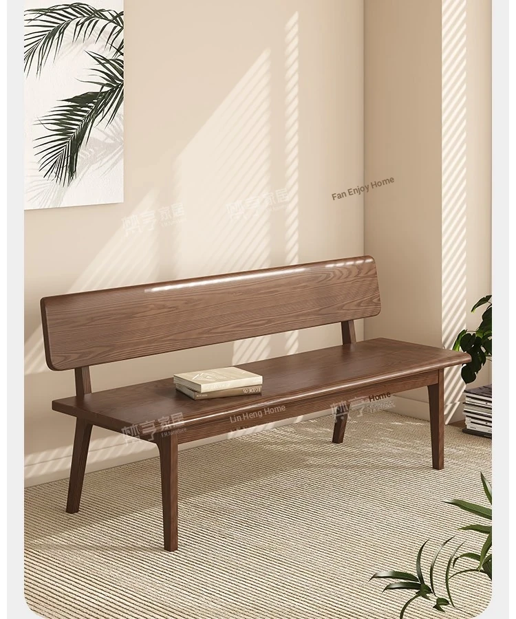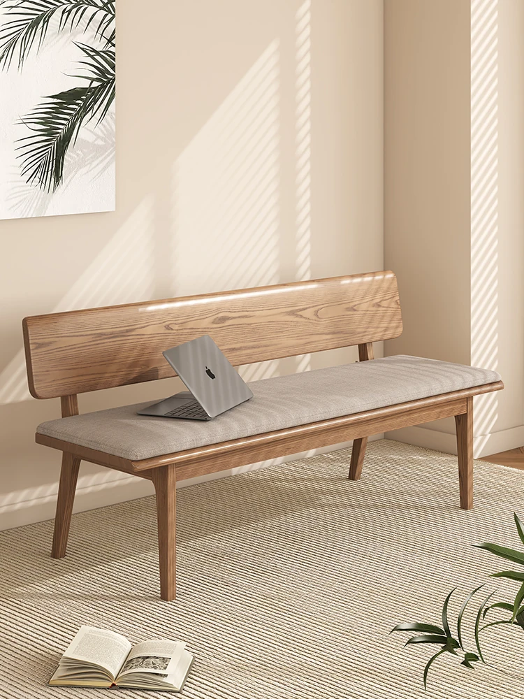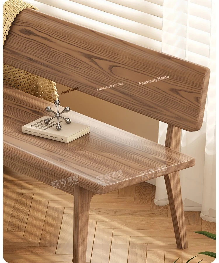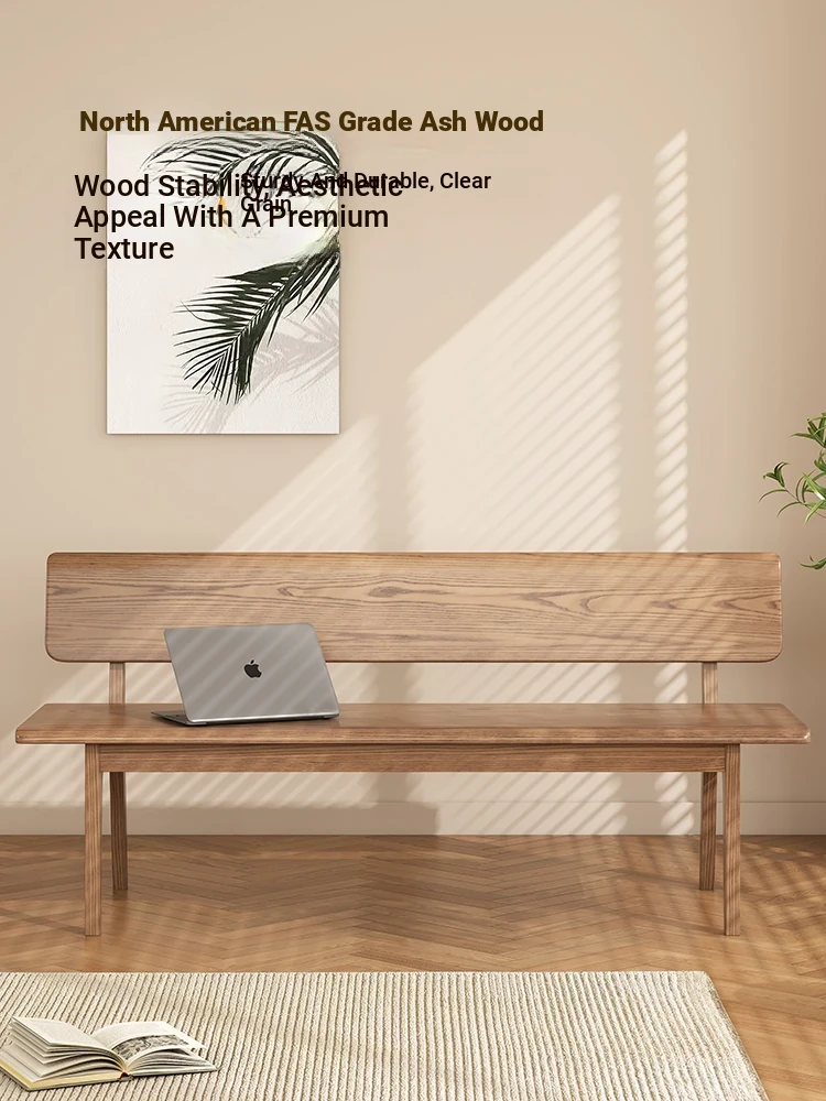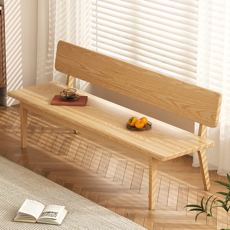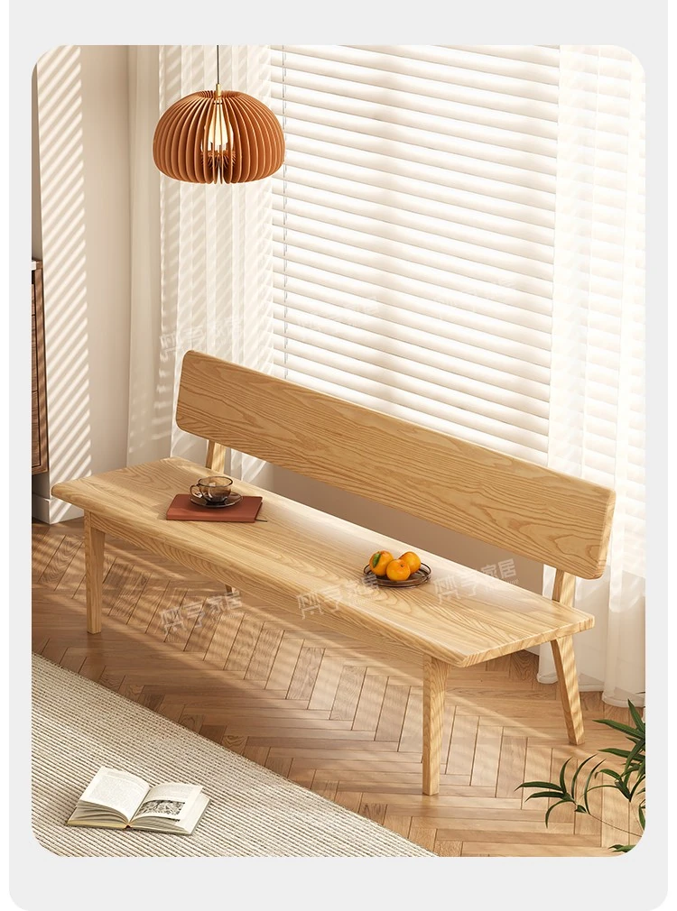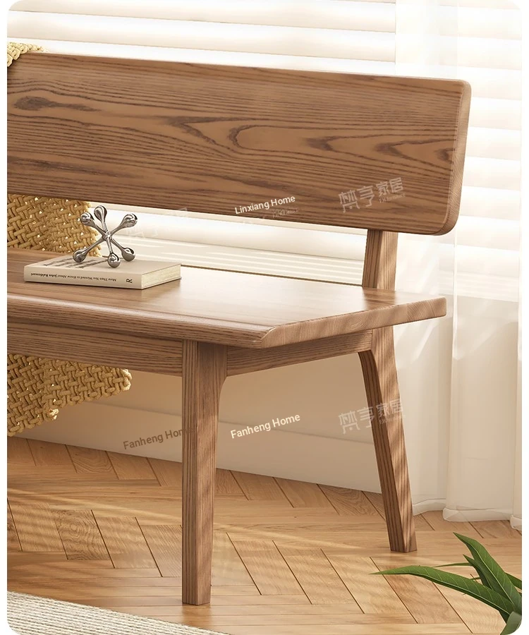 Solid Wood Bench with Backrest - Scandinavian Style Ash Wood, Modern Minimalist Bedroom Bed End Bench, Dining Room Booth, Shoe Changing Stool