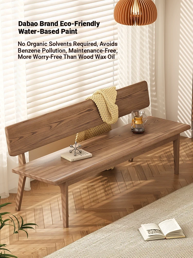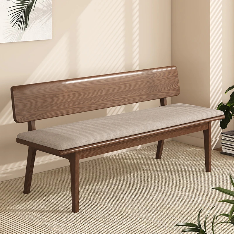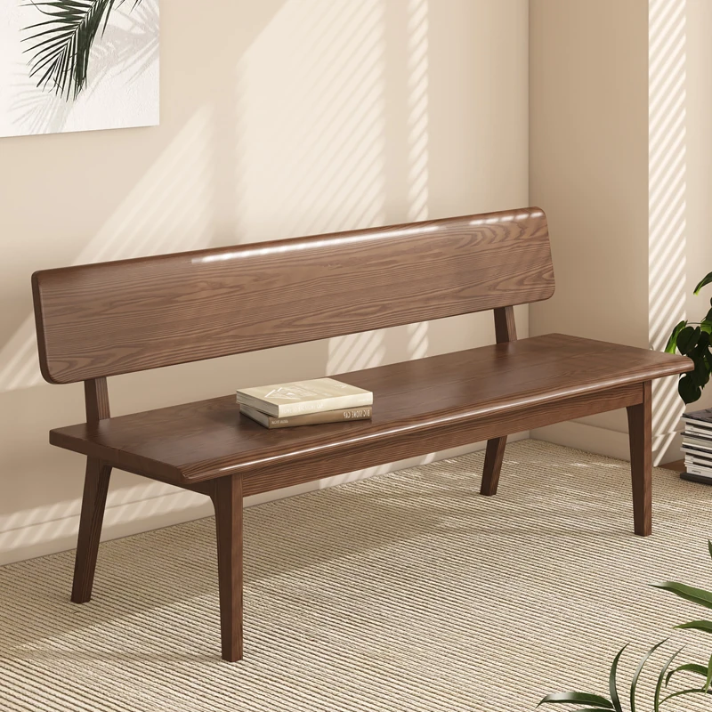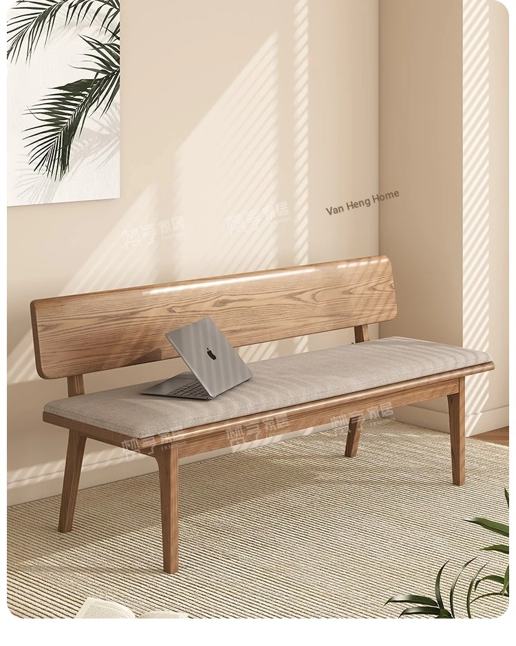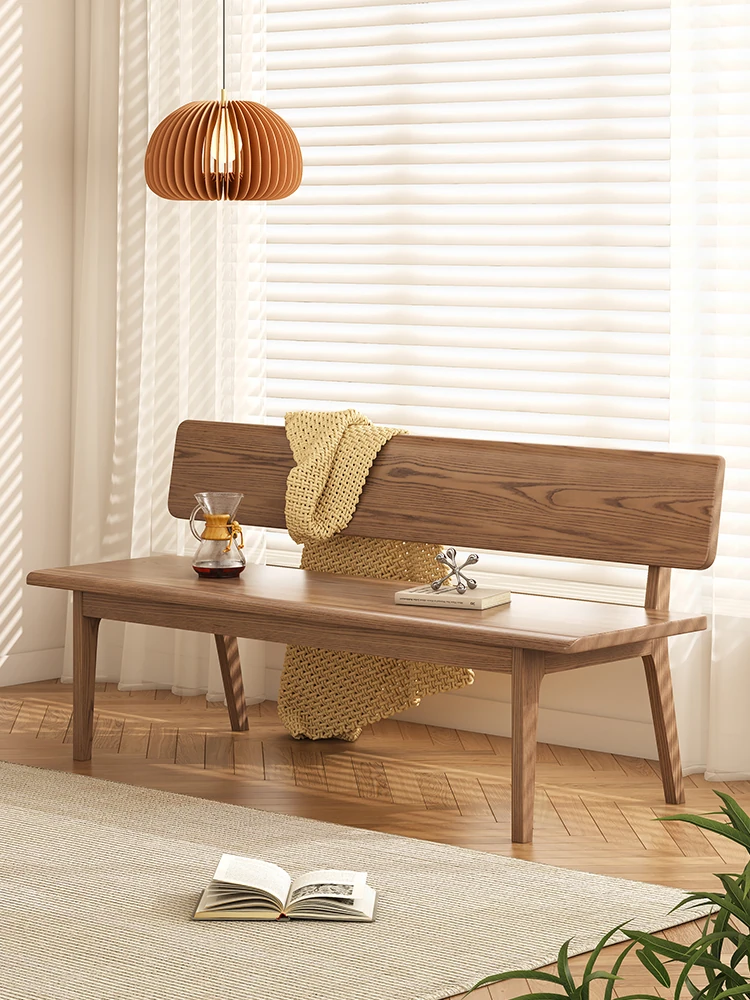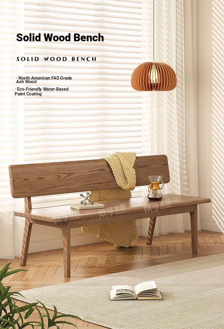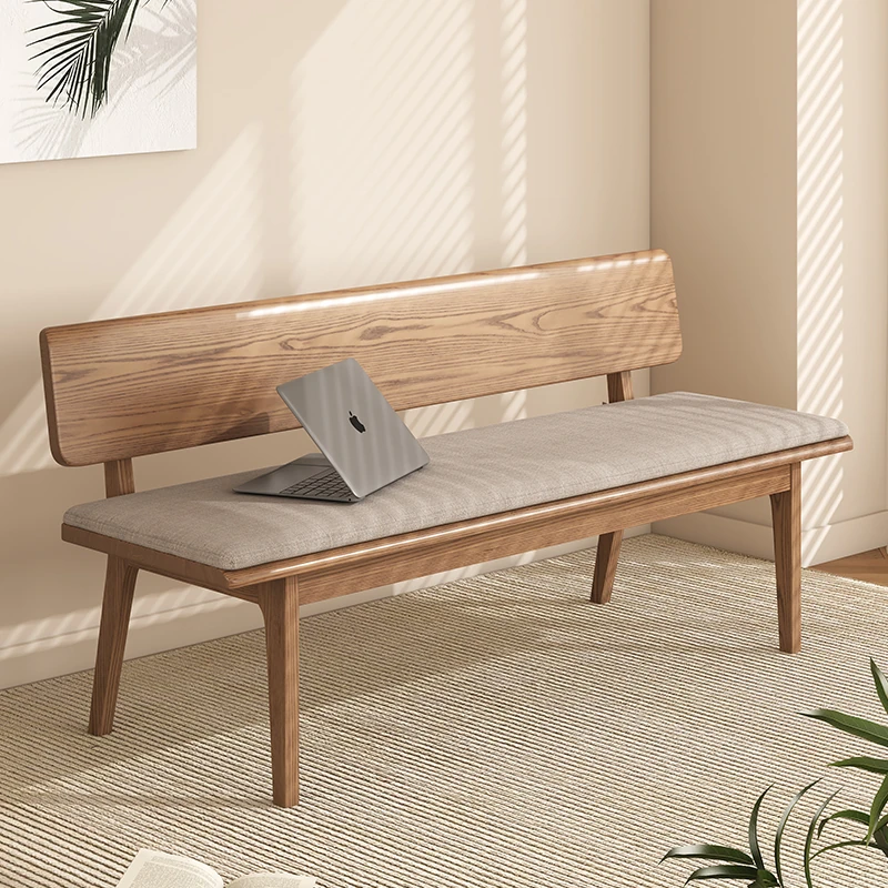 Solid Wood Bench with Backrest - Scandinavian Style Ash Wood, Modern Minimalist Bedroom Bed End Bench, Dining Room Booth, Shoe Changing Stool
