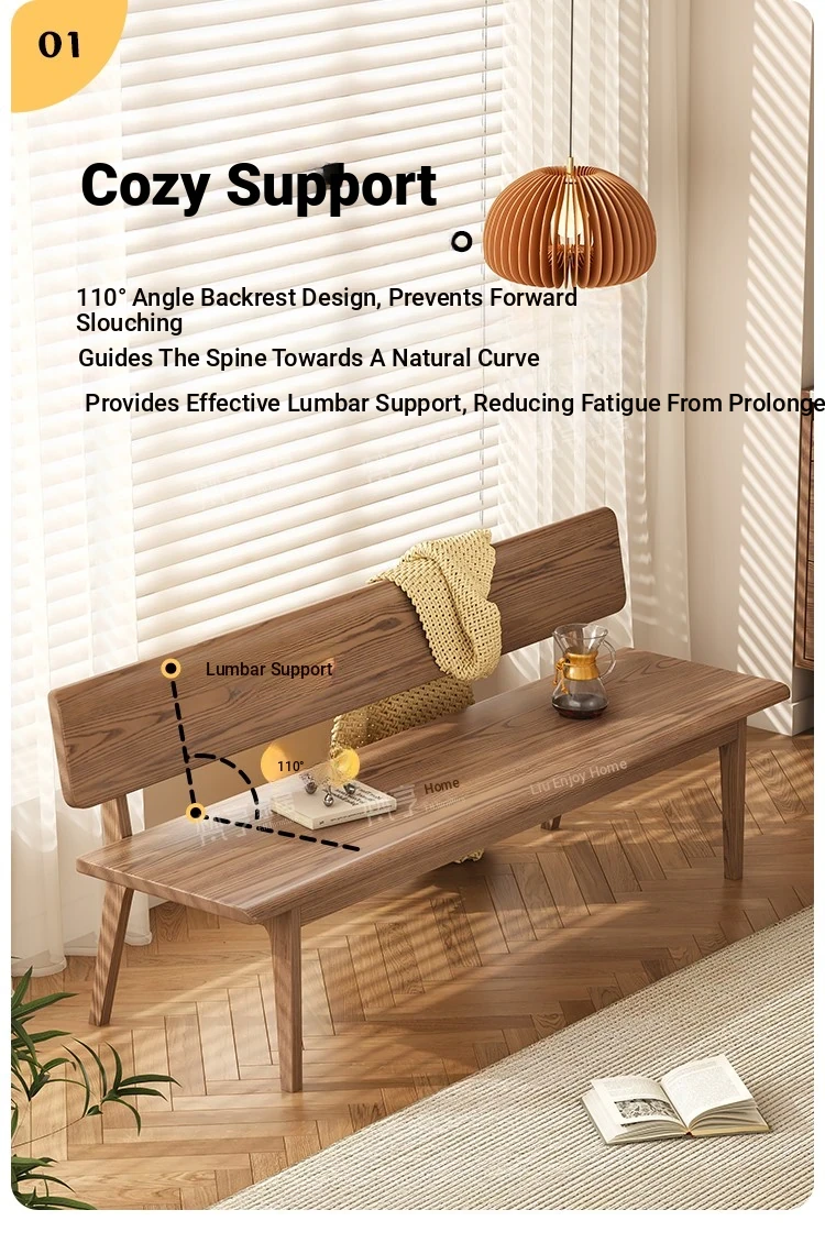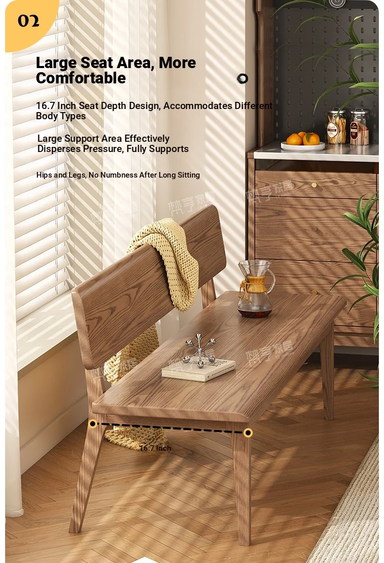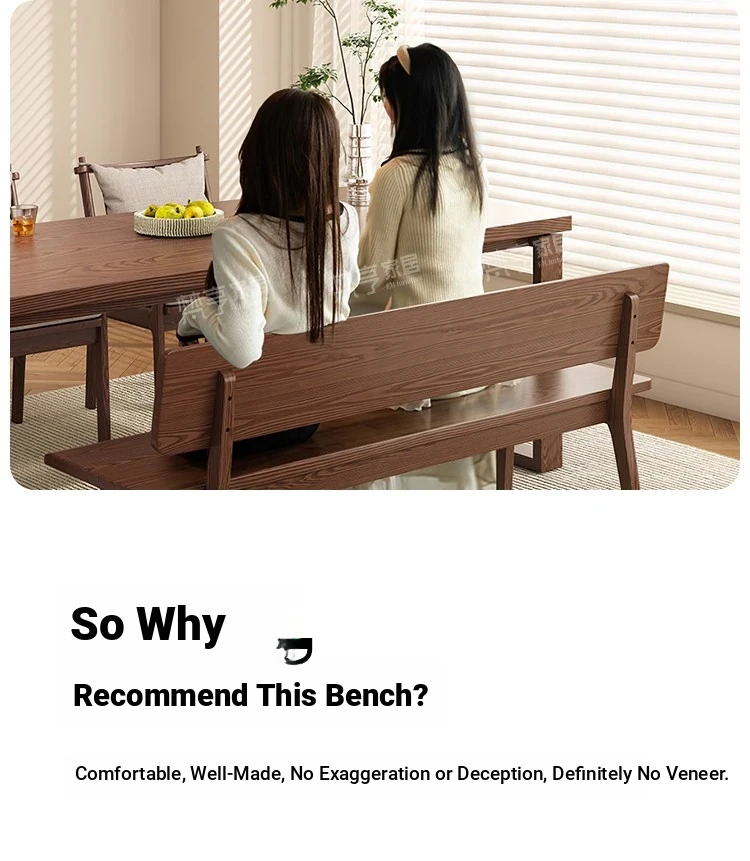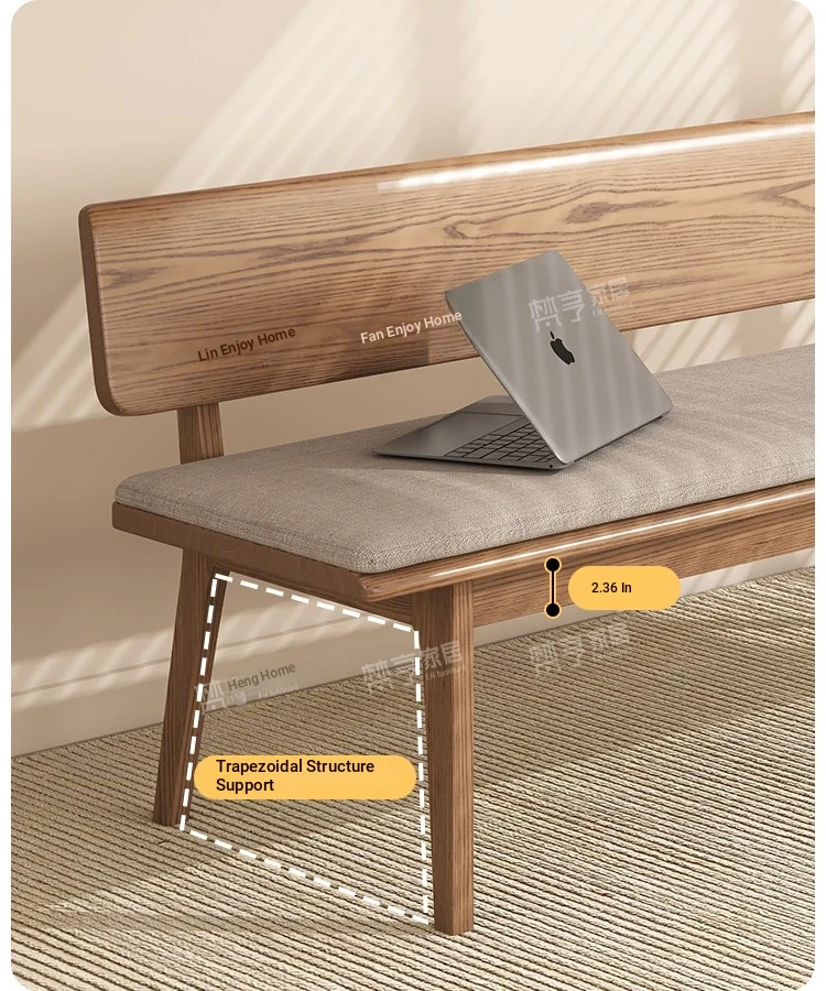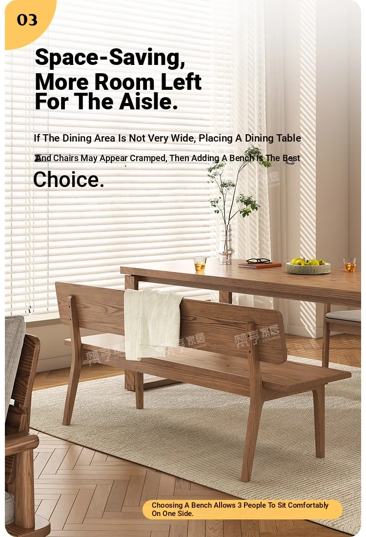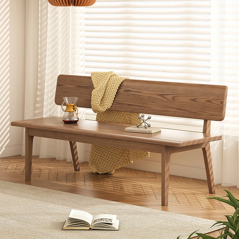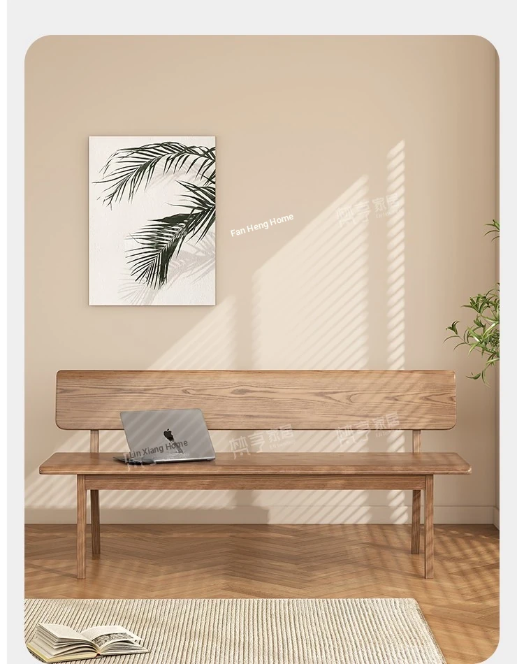 Solid Wood Bench with Backrest - Scandinavian Style Ash Wood, Modern Minimalist Bedroom Bed End Bench, Dining Room Booth, Shoe Changing Stool
