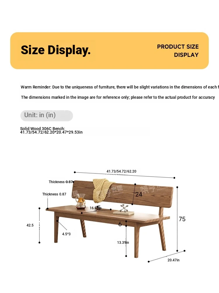 43.31 in walnut color [no seat bag/Ash all solid wood]]