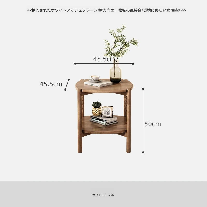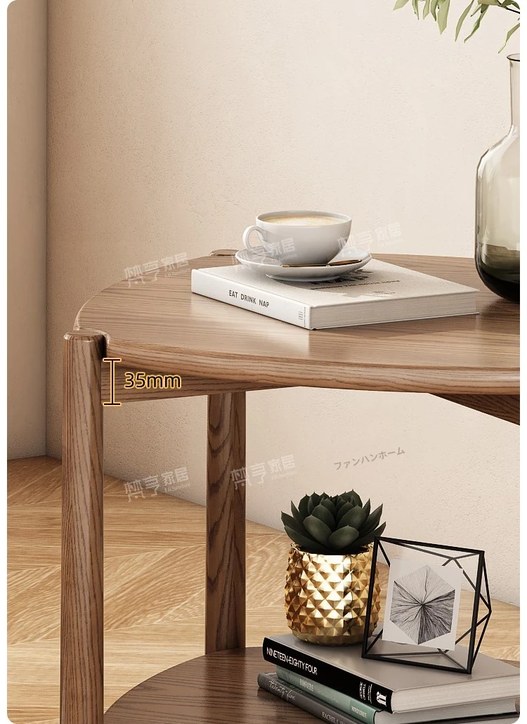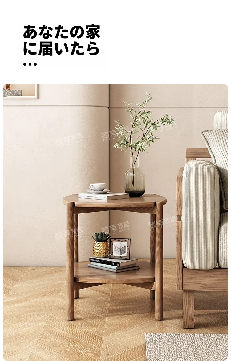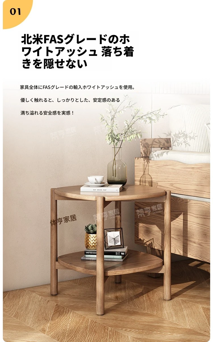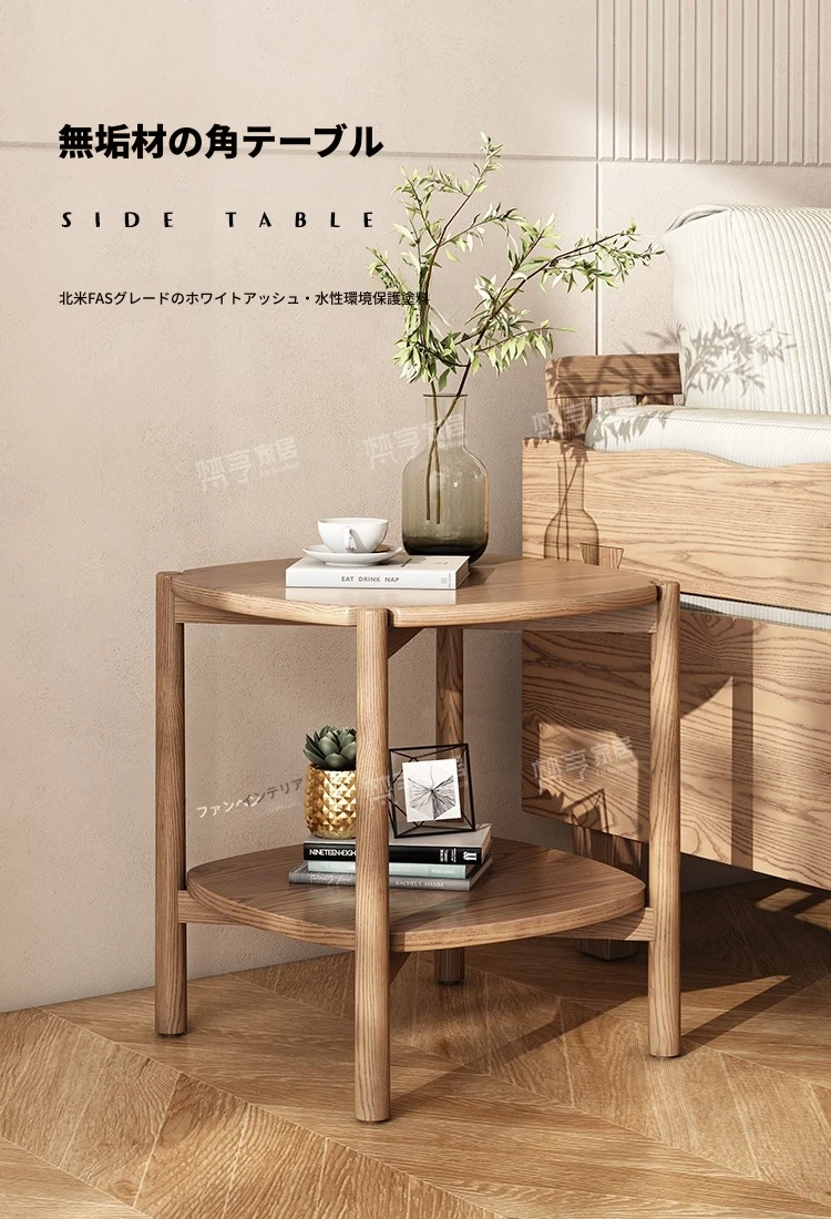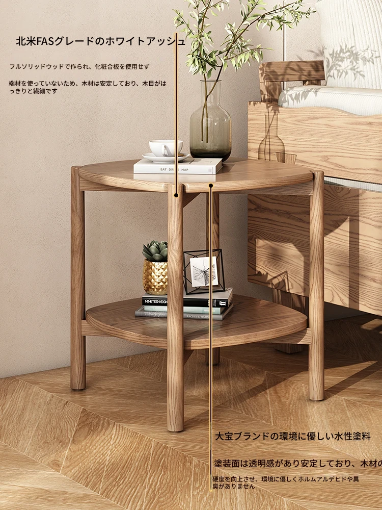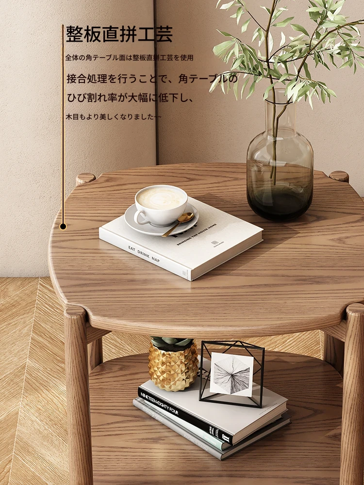 全実木製ミニコーヒーテーブル - ソファサイドや隅にぴったり!北欧スタイルのホワイトアッシュ材使用、小型住宅に最適。移動可能で、バルコニーでも大活躍!おしゃれで機能的な空間を演出します。