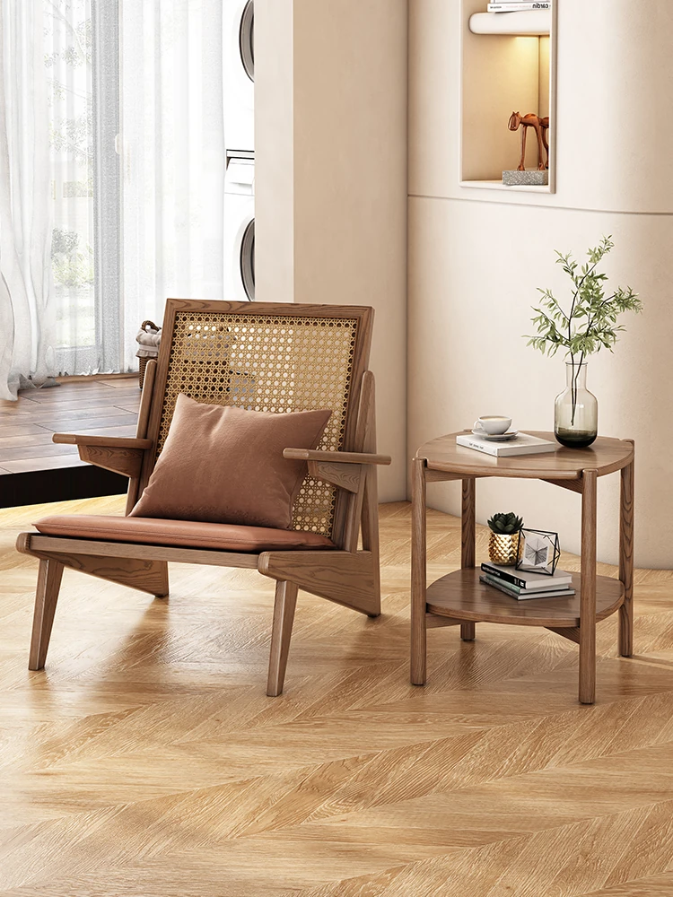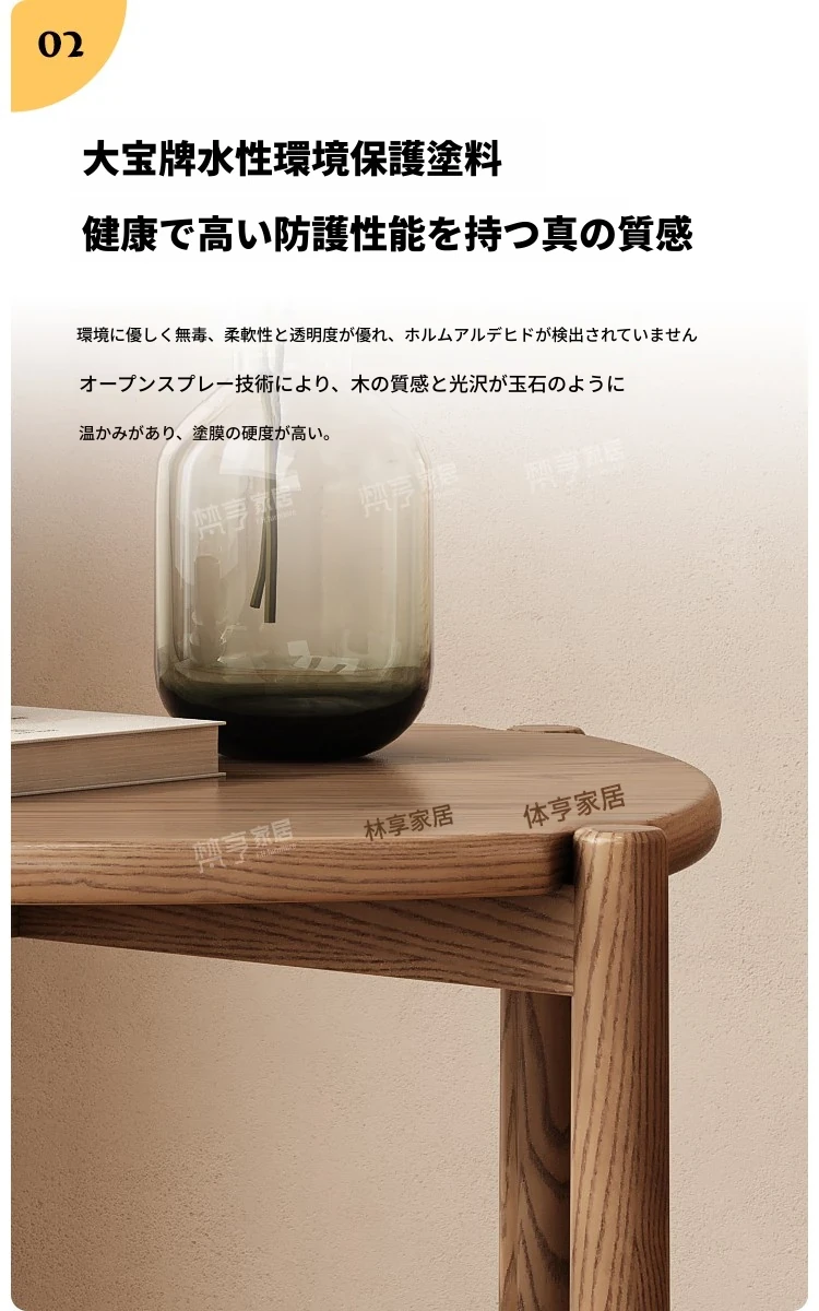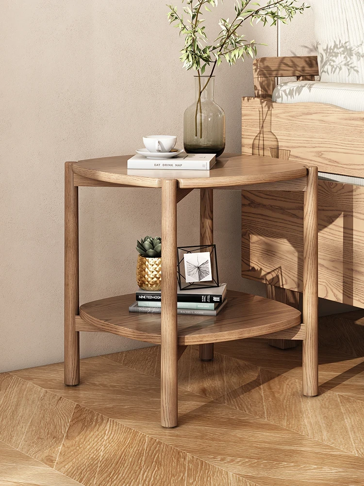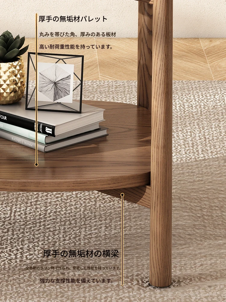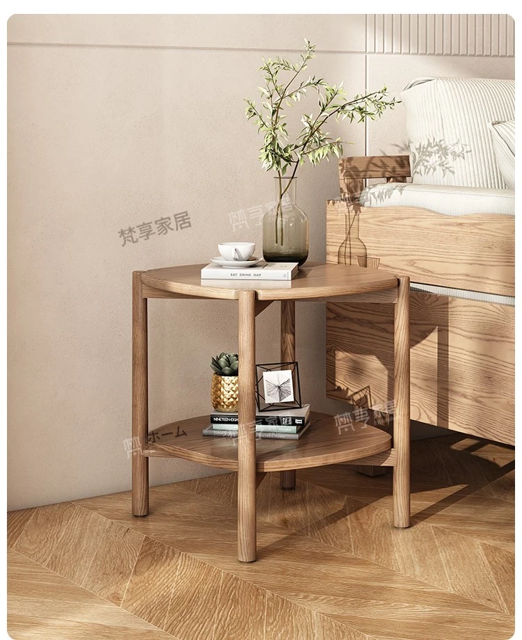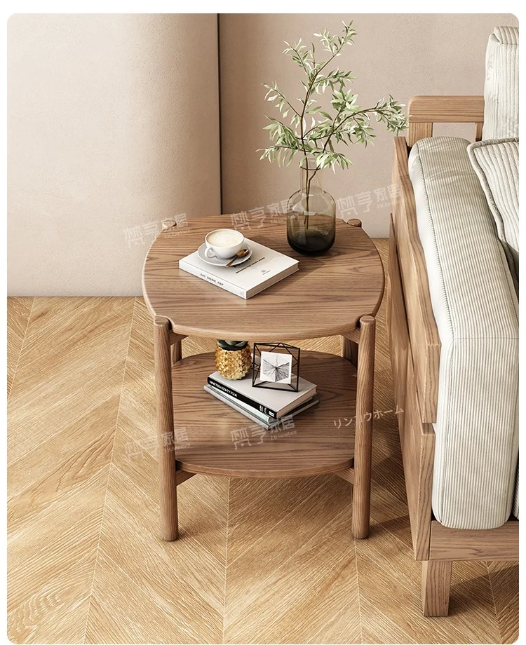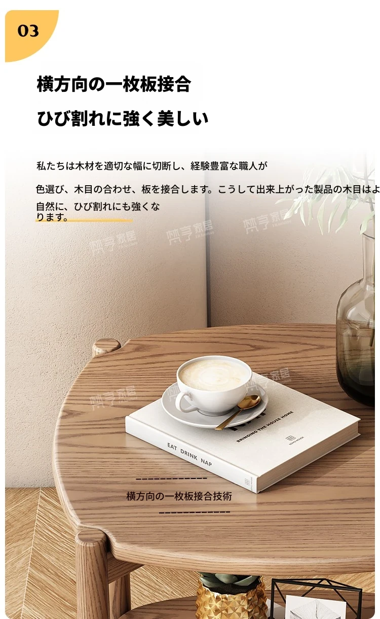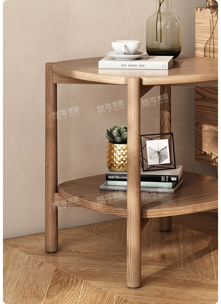 全実木製ミニコーヒーテーブル - ソファサイドや隅にぴったり!北欧スタイルのホワイトアッシュ材使用、小型住宅に最適。移動可能で、バルコニーでも大活躍!おしゃれで機能的な空間を演出します。