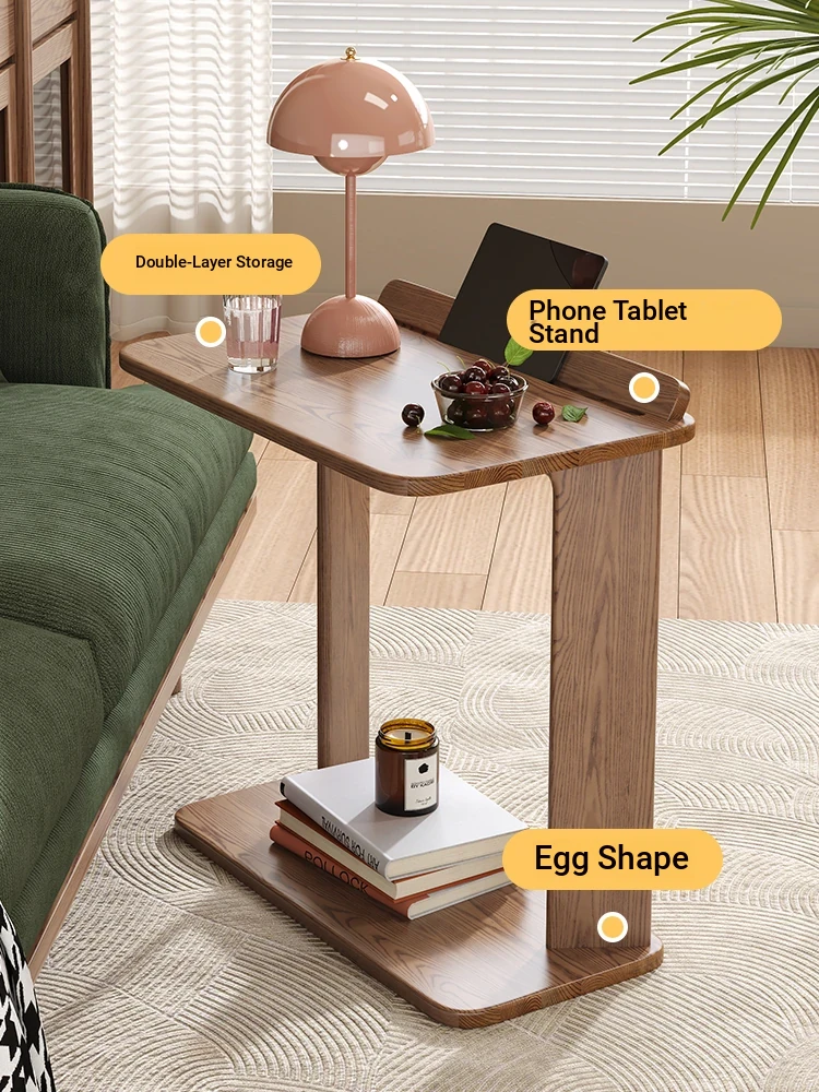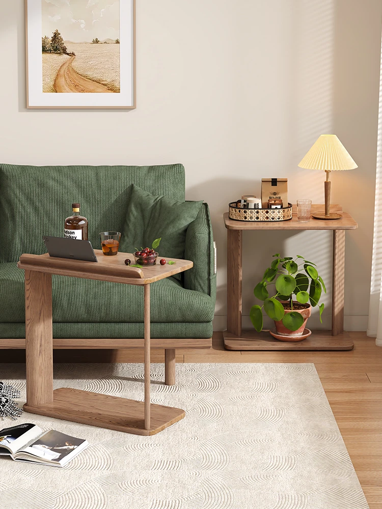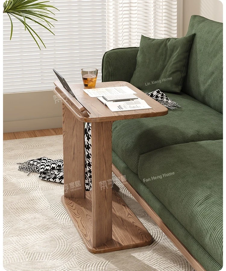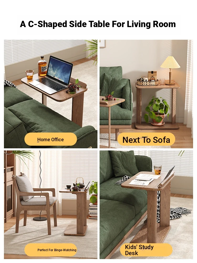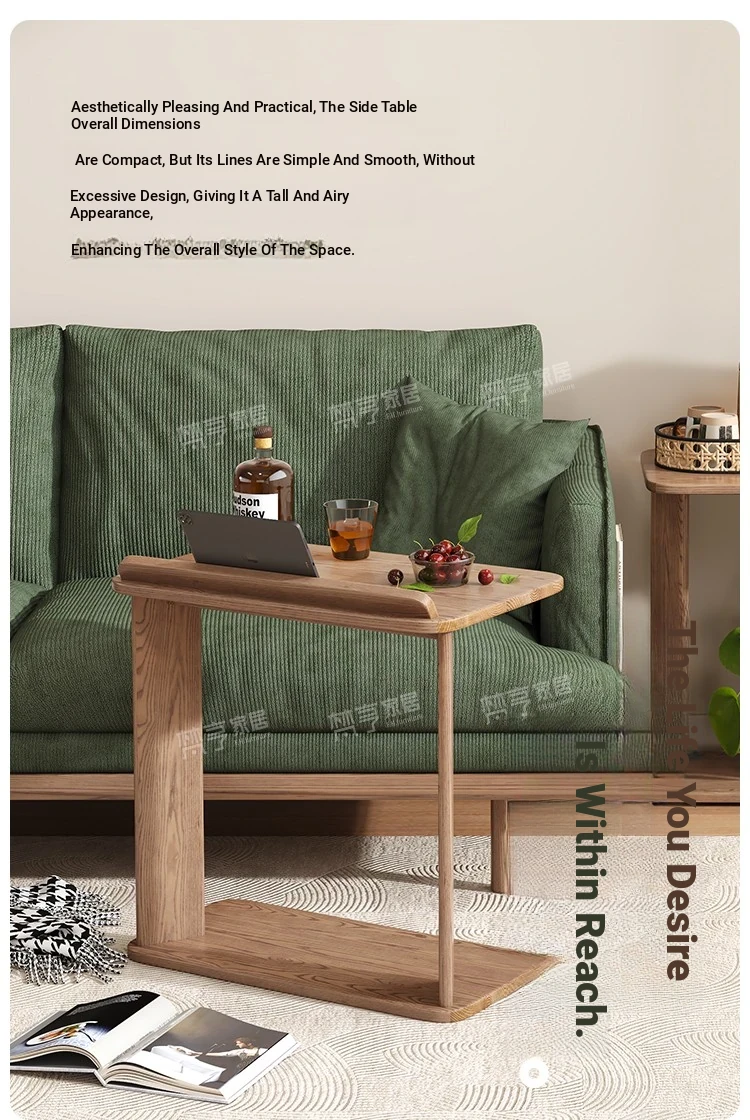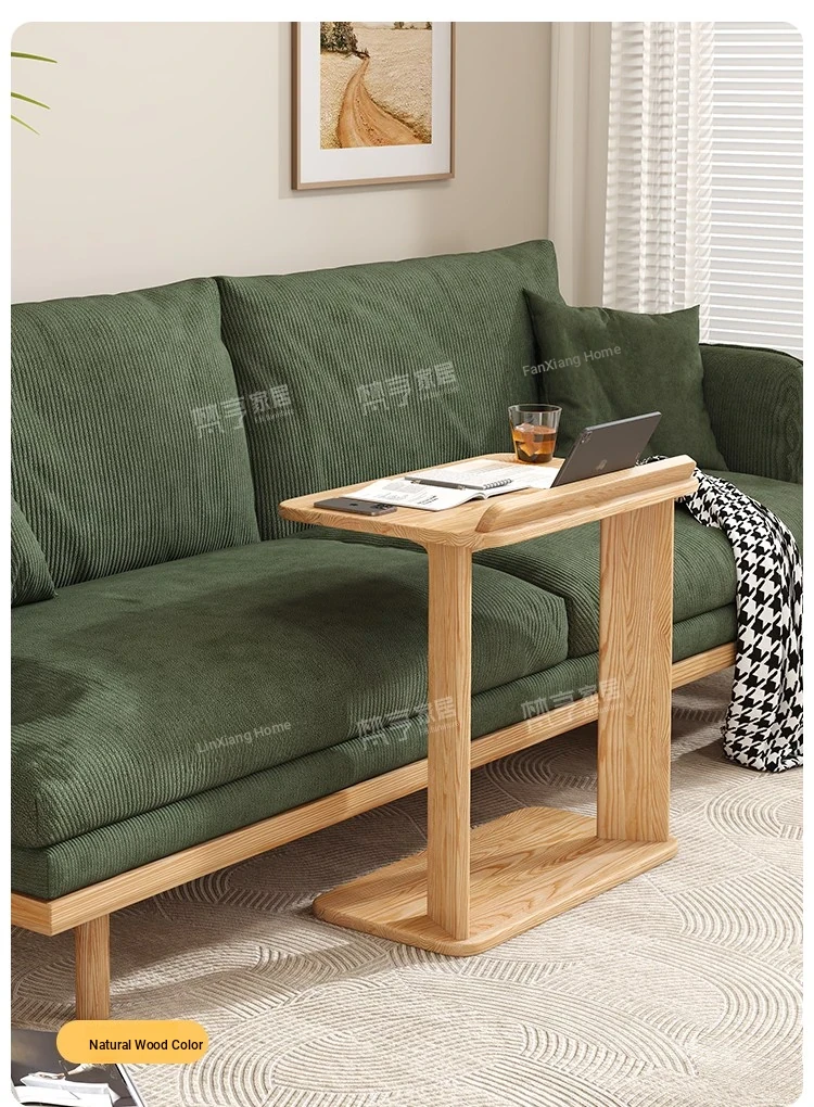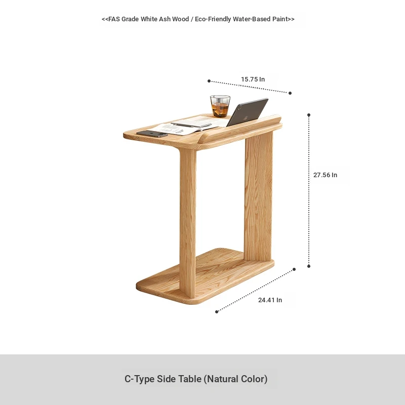 天然木製のシンプルなサイドテーブル - ホワイトアッシュ材使用!リビングルームや子供部屋に最適な移動可能な小型デスク。学習やパソコン作業にもピッタリ。スタイリッシュで機能的な空間を演出します!