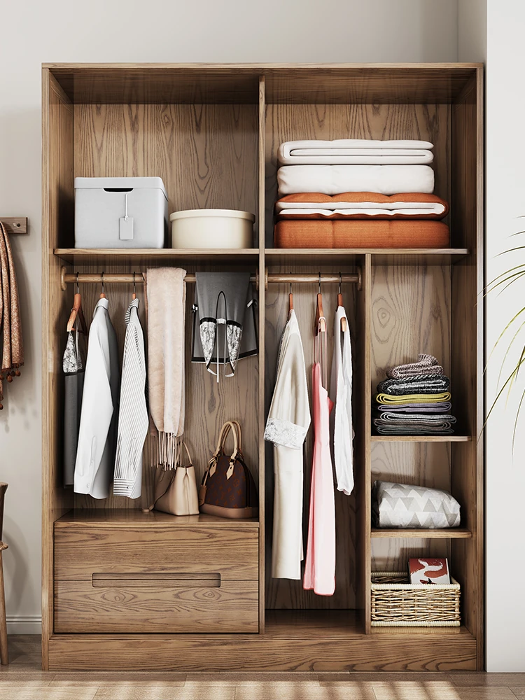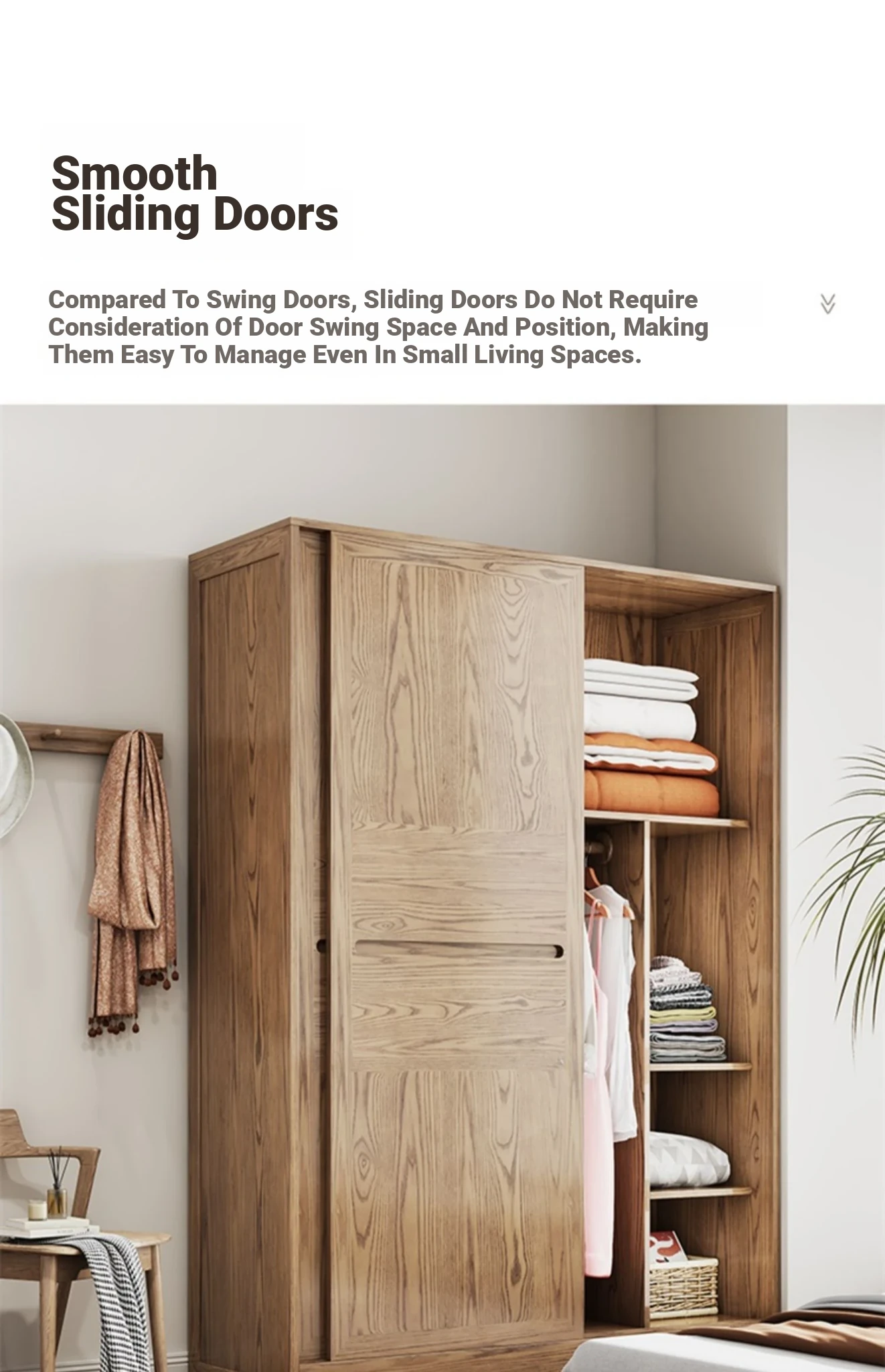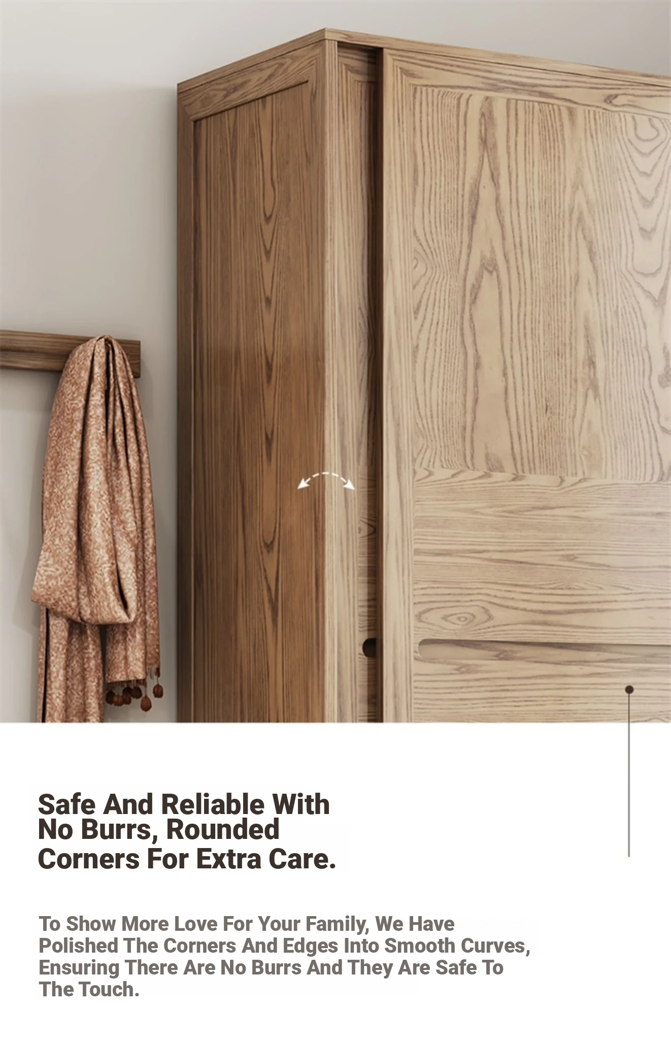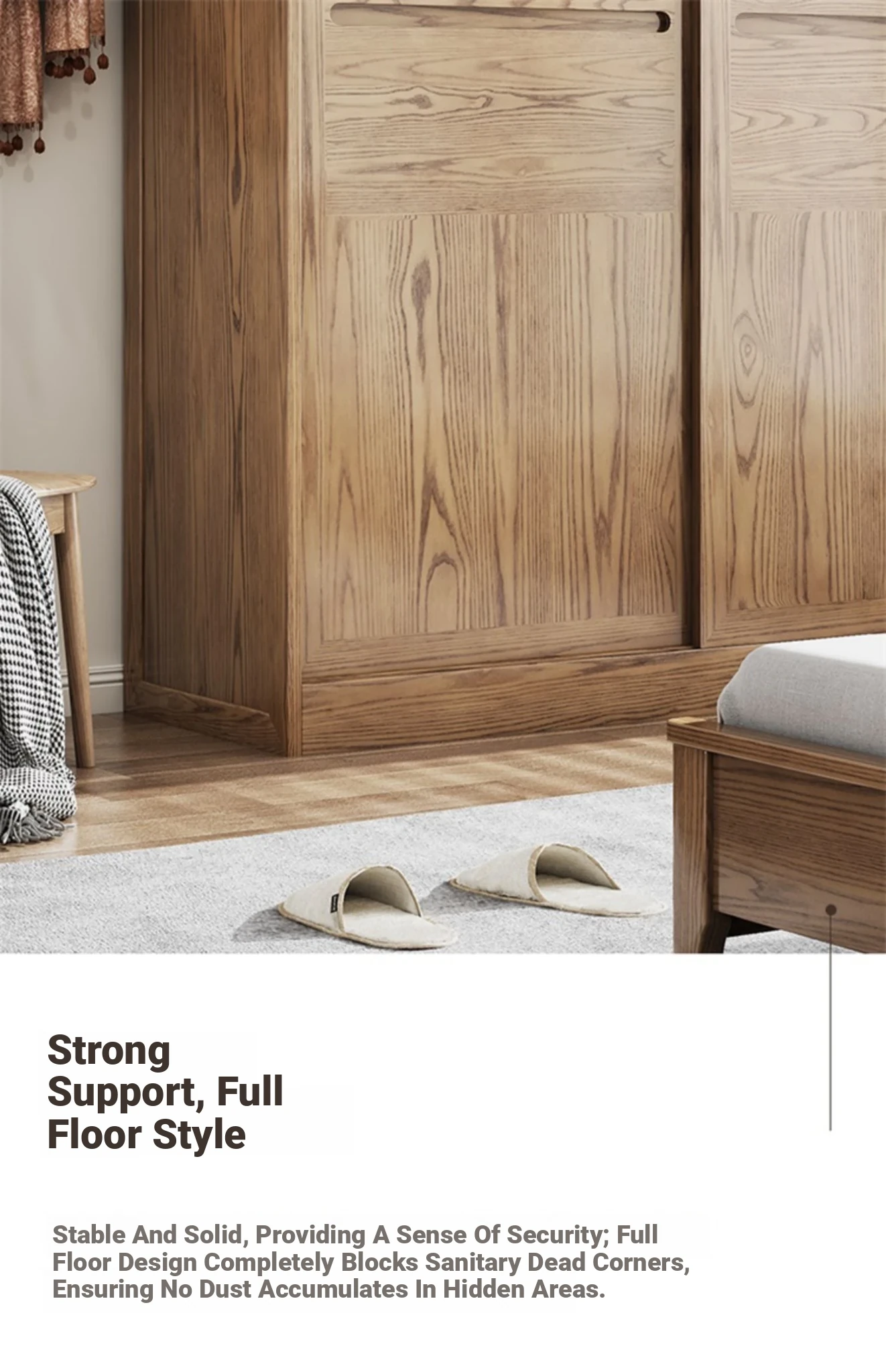 北欧風全実木クローゼット スライドドア付き 家庭用寝室にぴったりのフロアタイプ収納キャビネット モダンシンプルなデザイン ハンガーラック付き!おしゃれで機能的な収納を実現!