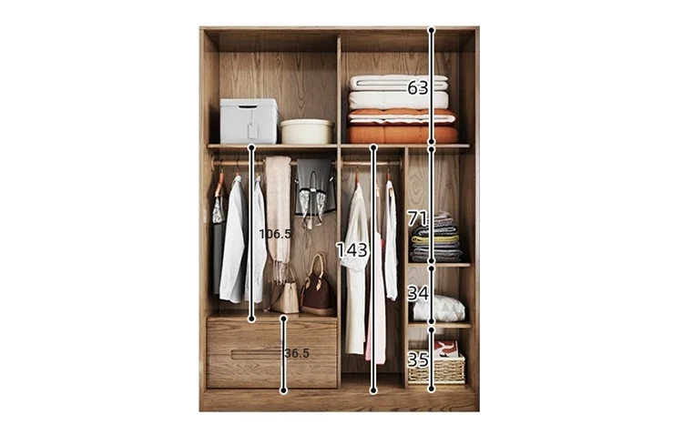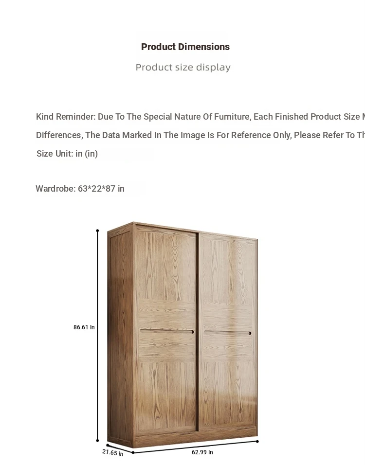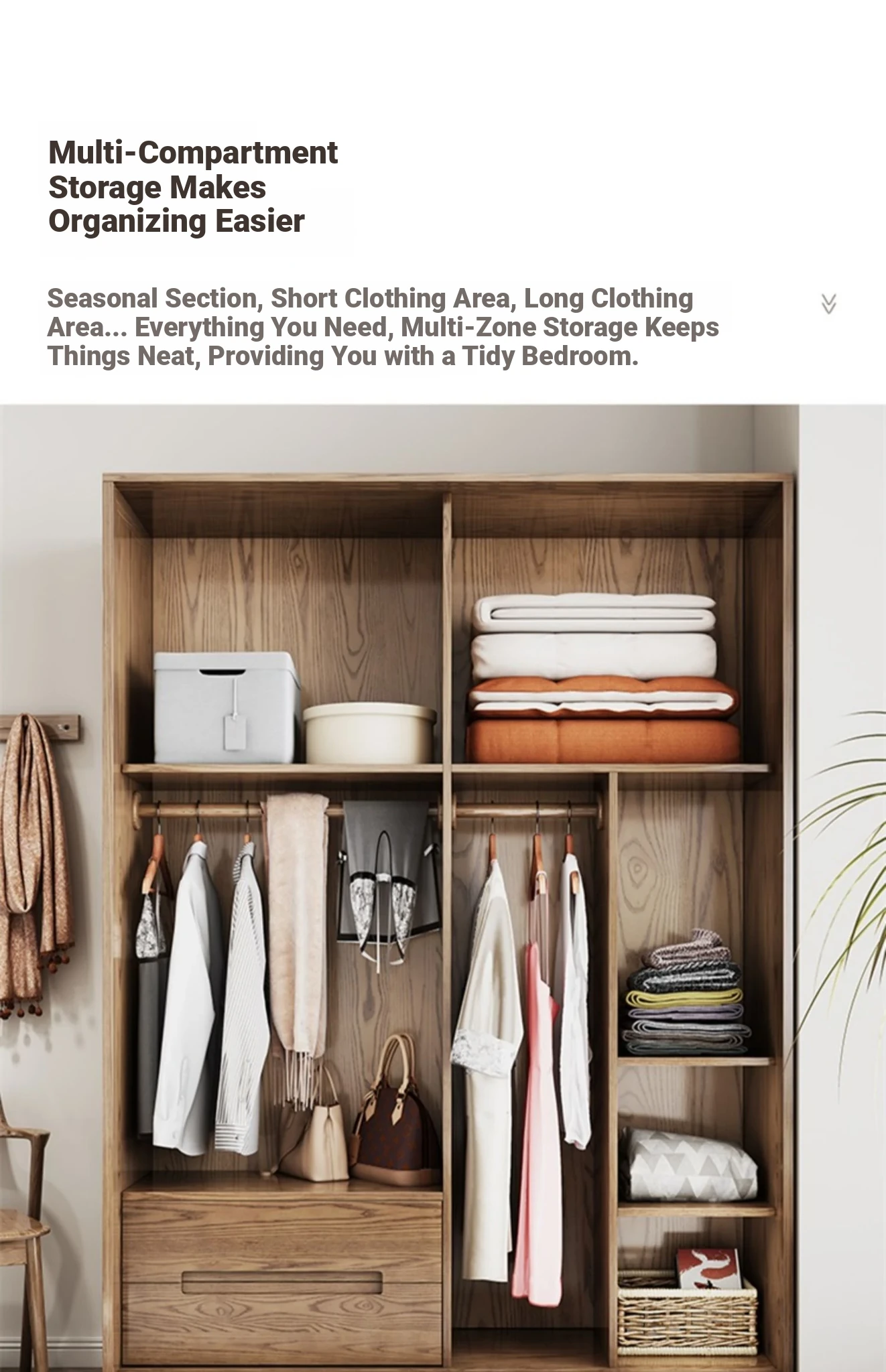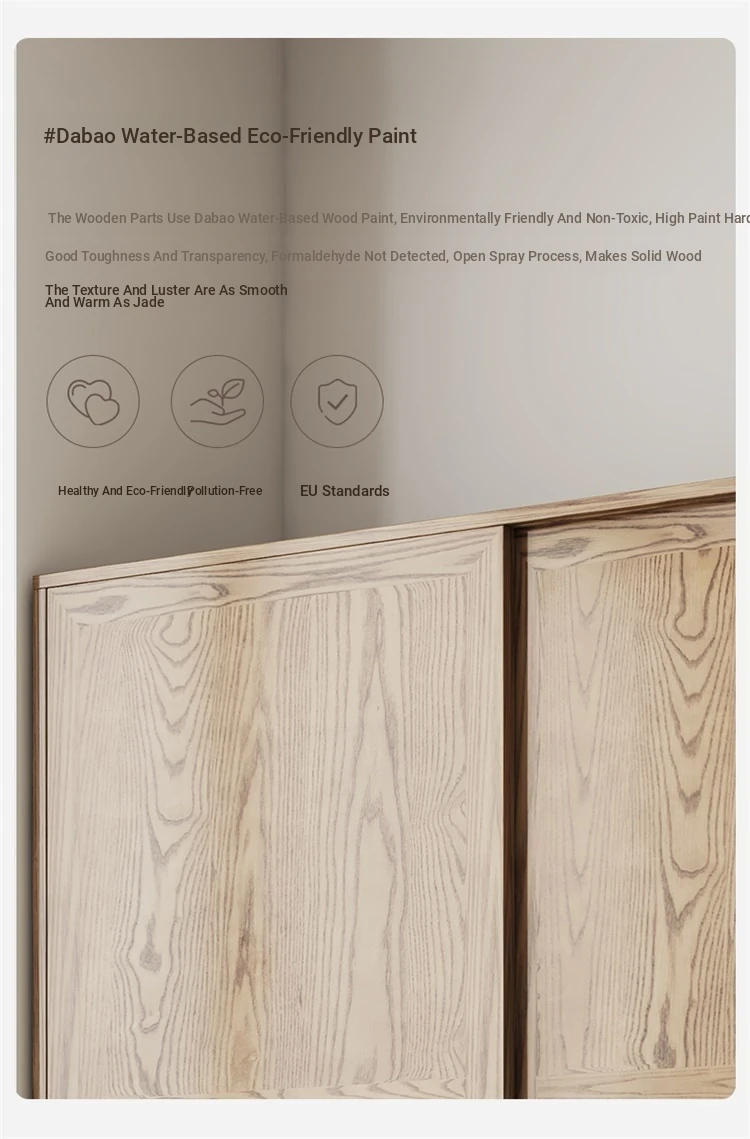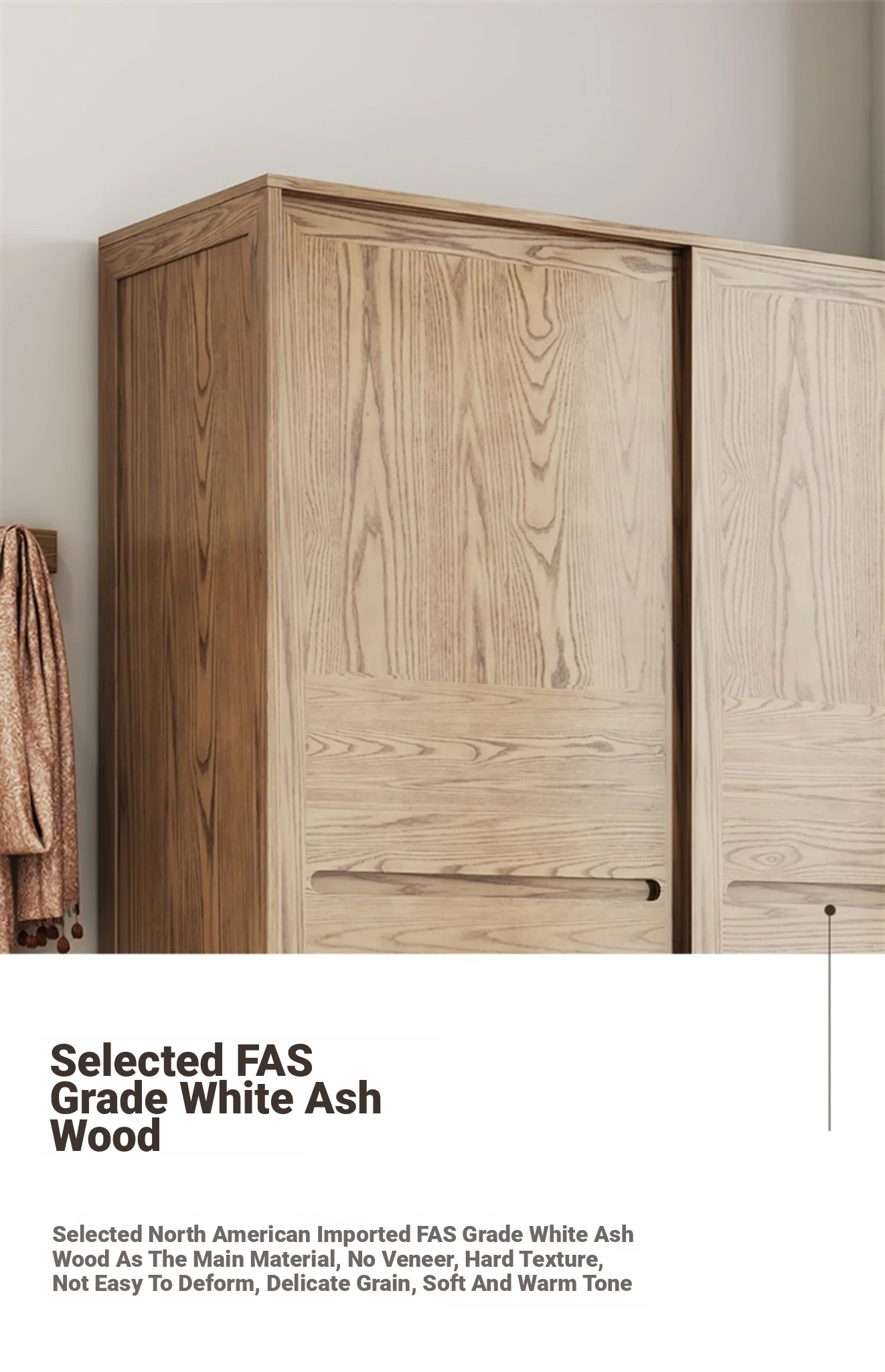 北欧風全実木クローゼット スライドドア付き 家庭用寝室にぴったりのフロアタイプ収納キャビネット モダンシンプルなデザイン ハンガーラック付き!おしゃれで機能的な収納を実現!