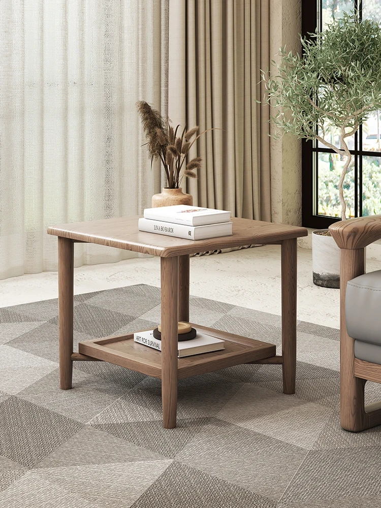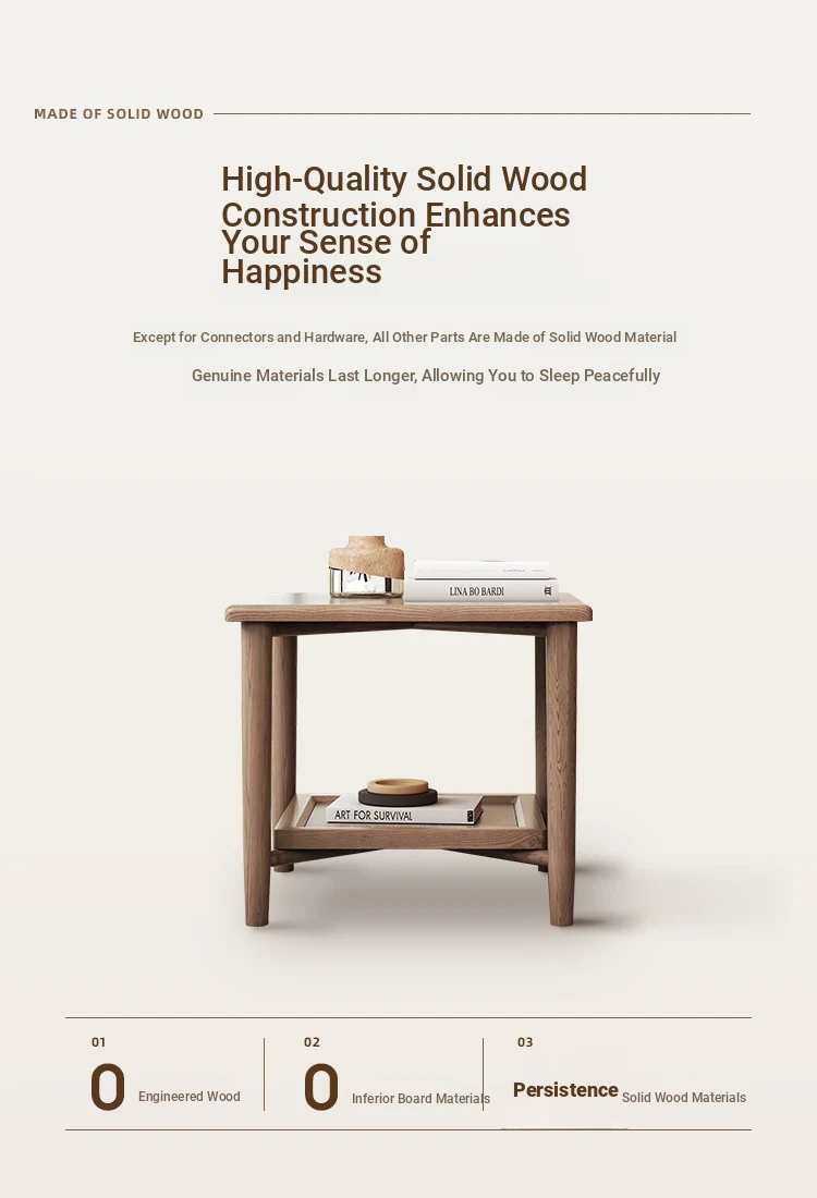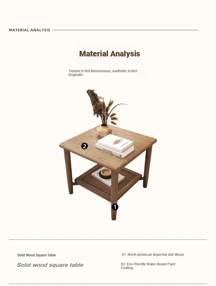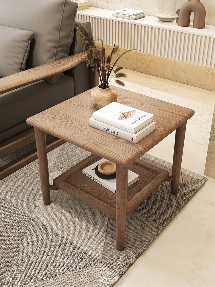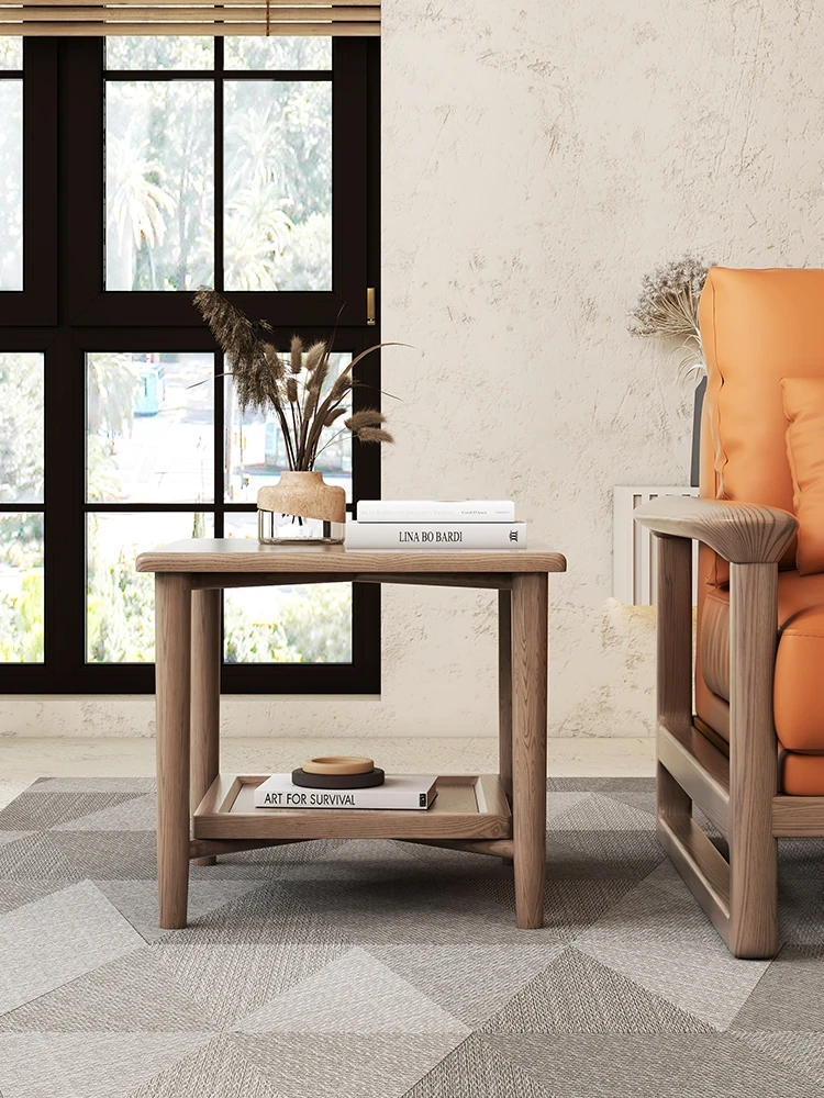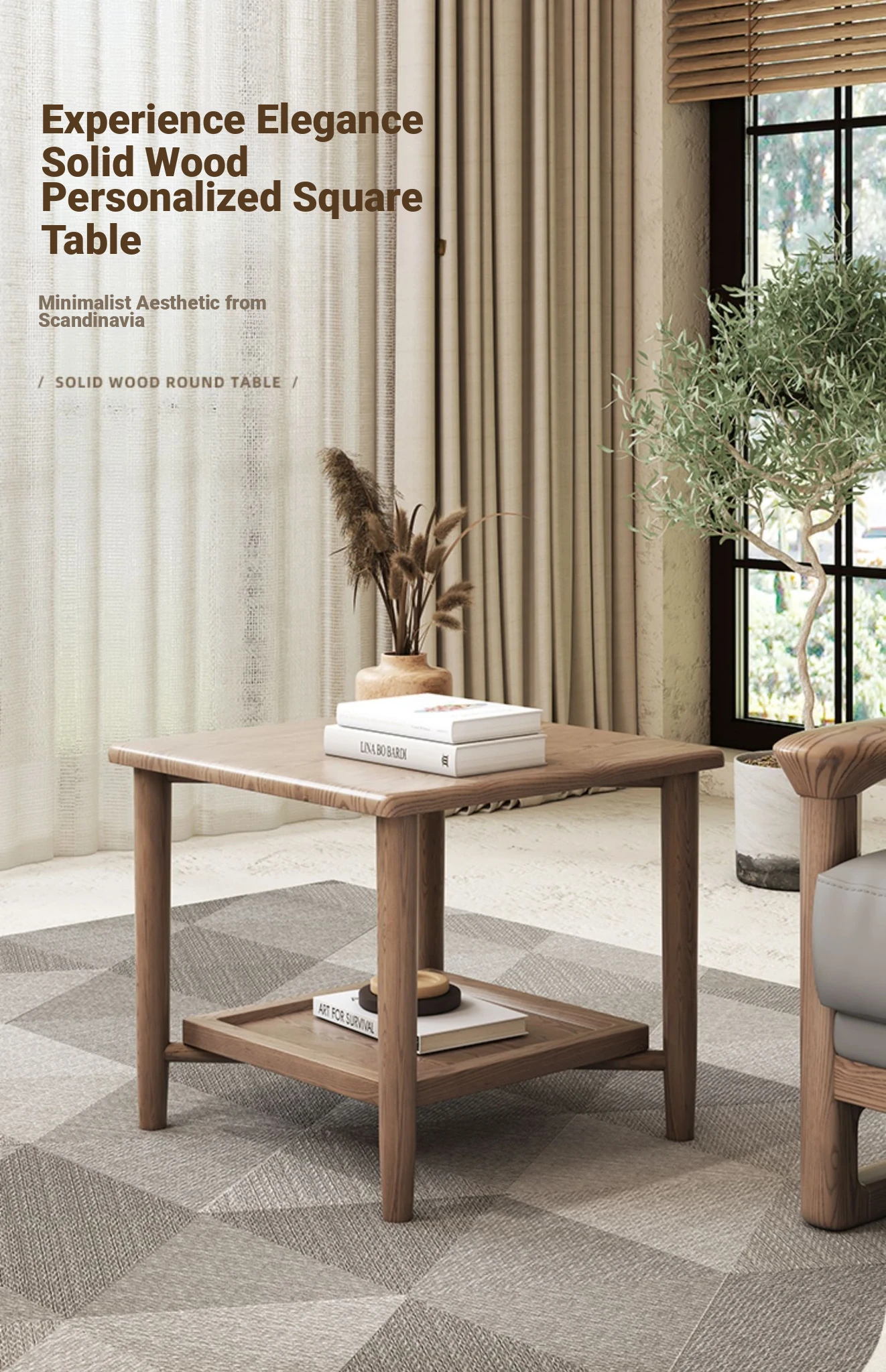 Nordic Solid Wood Side Table - Stylish Ash Wood Small Square End Table for Living Room, Balcony, or Bedside Use - Perfect for Tea or Decorative Items