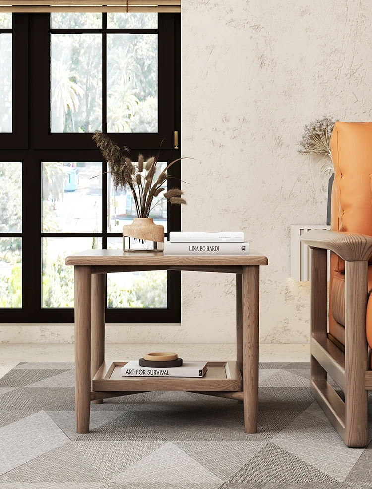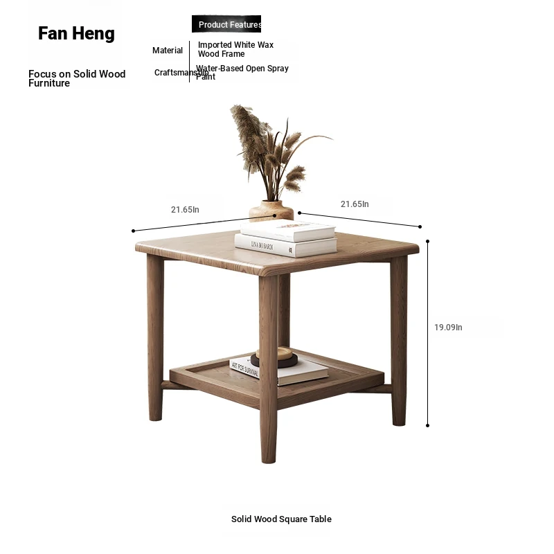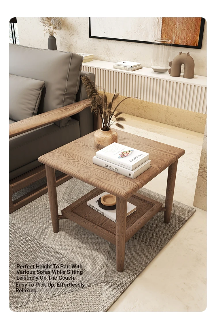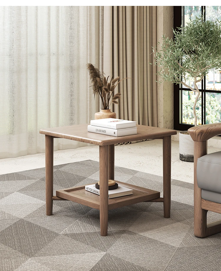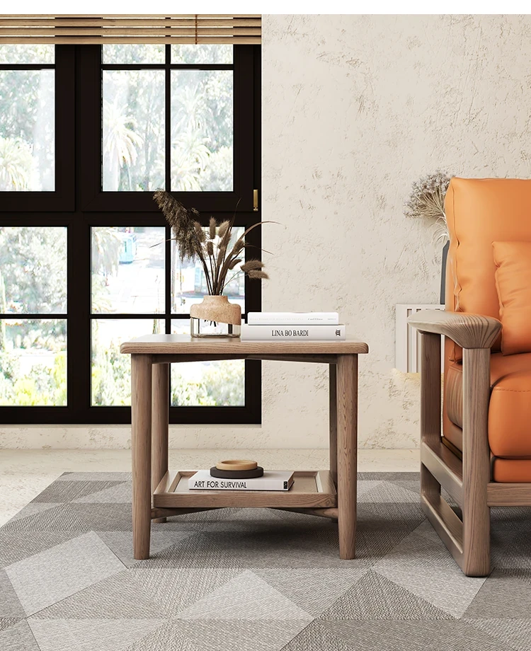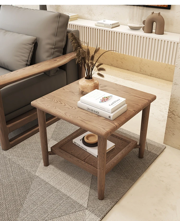 Nordic Solid Wood Side Table - Stylish Ash Wood Small Square End Table for Living Room, Balcony, or Bedside Use - Perfect for Tea or Decorative Items