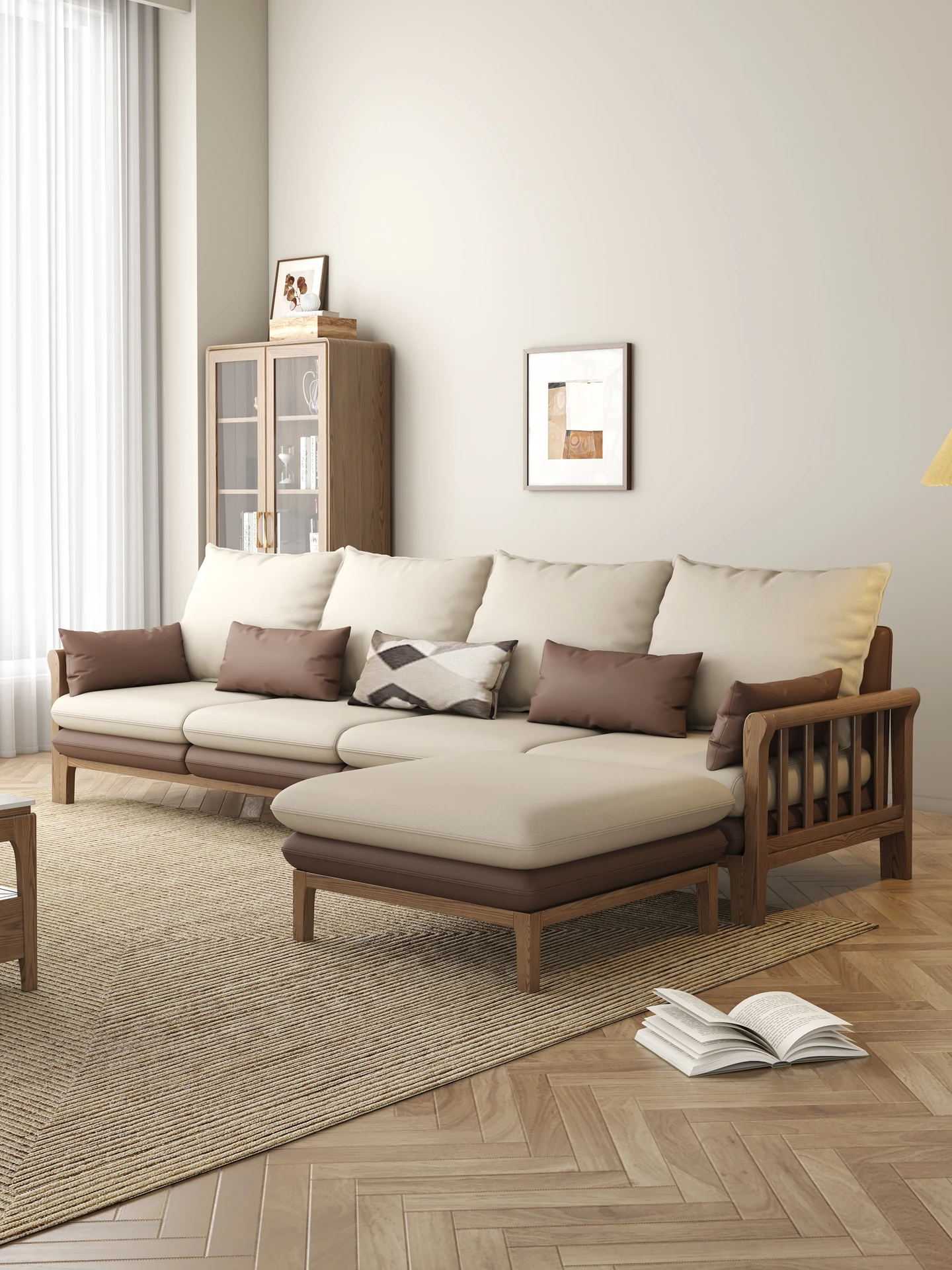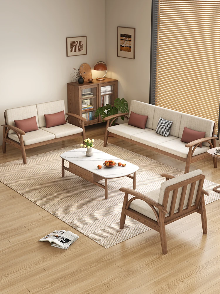 Nordic Solid Wood Sofa for Small Spaces - 3-Seater with Ash Wood Frame, Removable and Washable Fabric, Perfect for Year-Round Comfort
