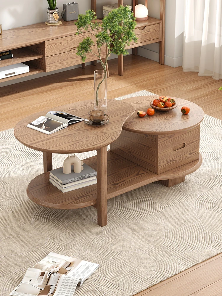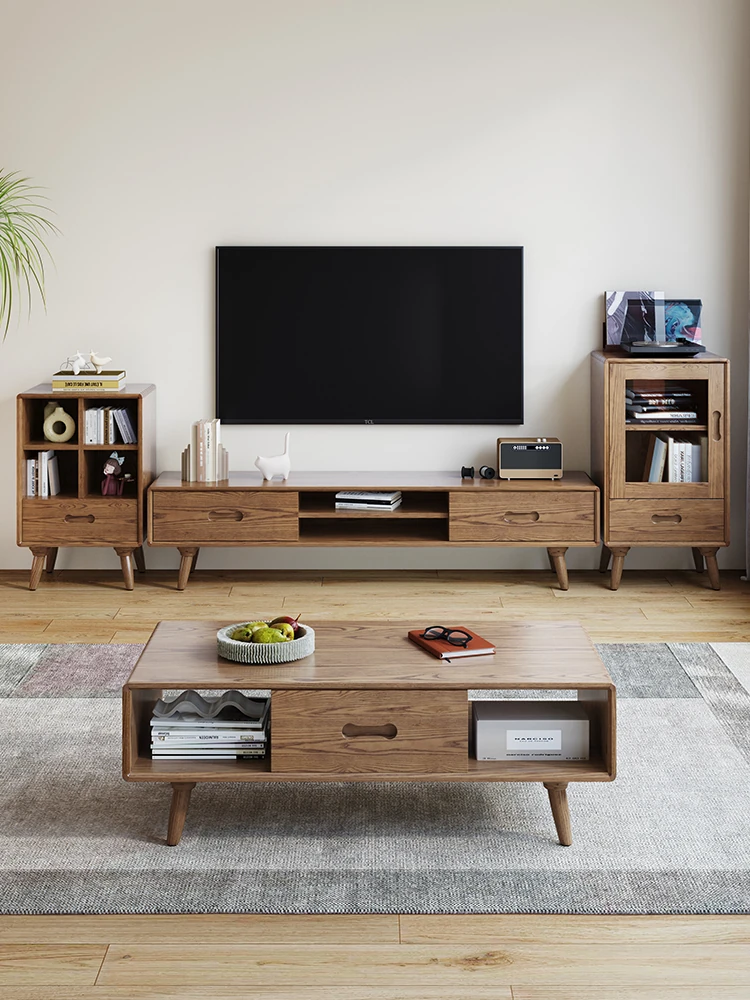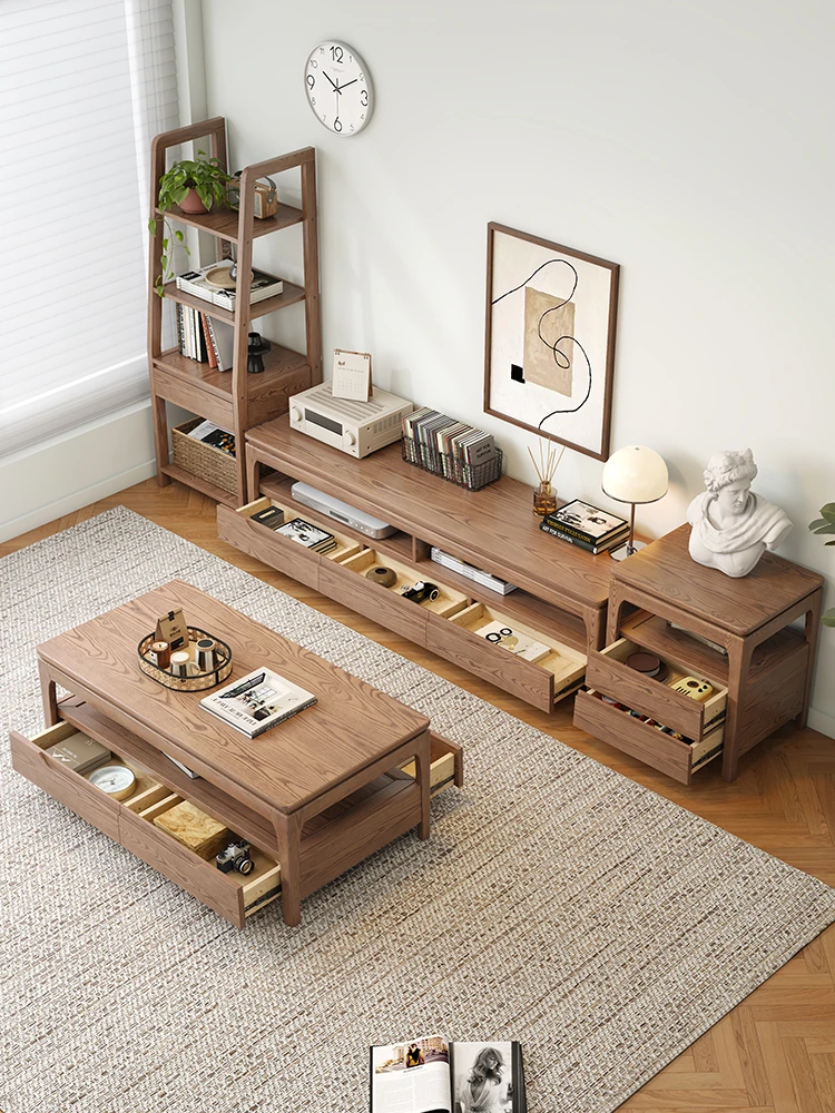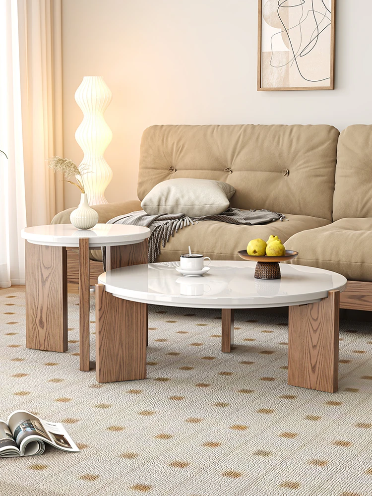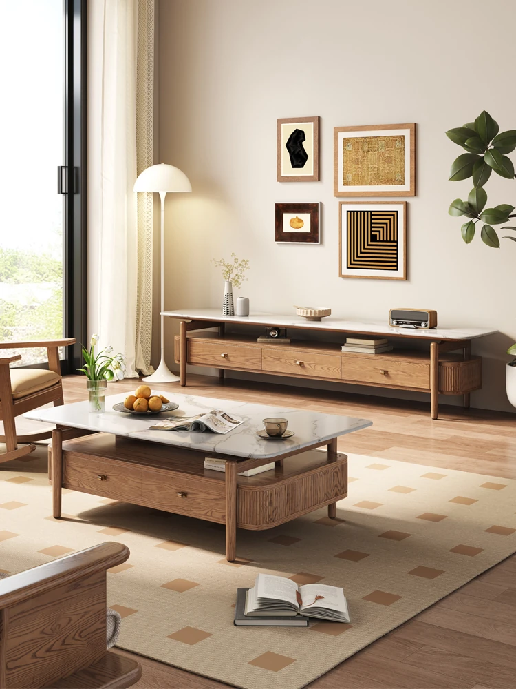 北欧スタイルの大理石と無垢材を使用したシンプルモダンなティーテーブルセット - ウォールナット色のコンパクトデザインで、リビングにぴったりの家具です!おしゃれで機能的な空間を演出します。