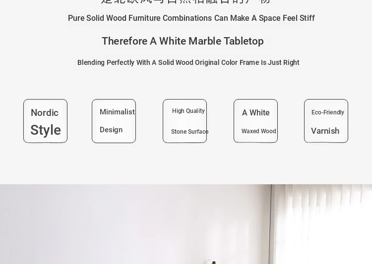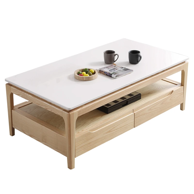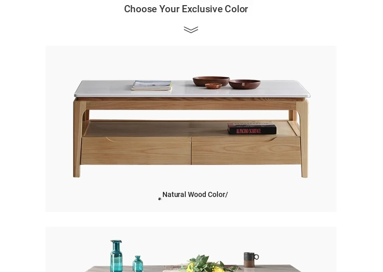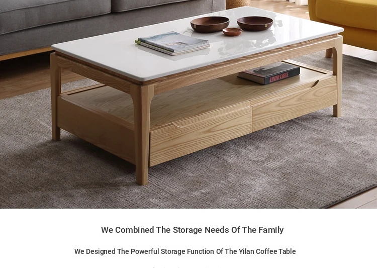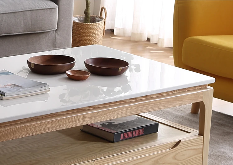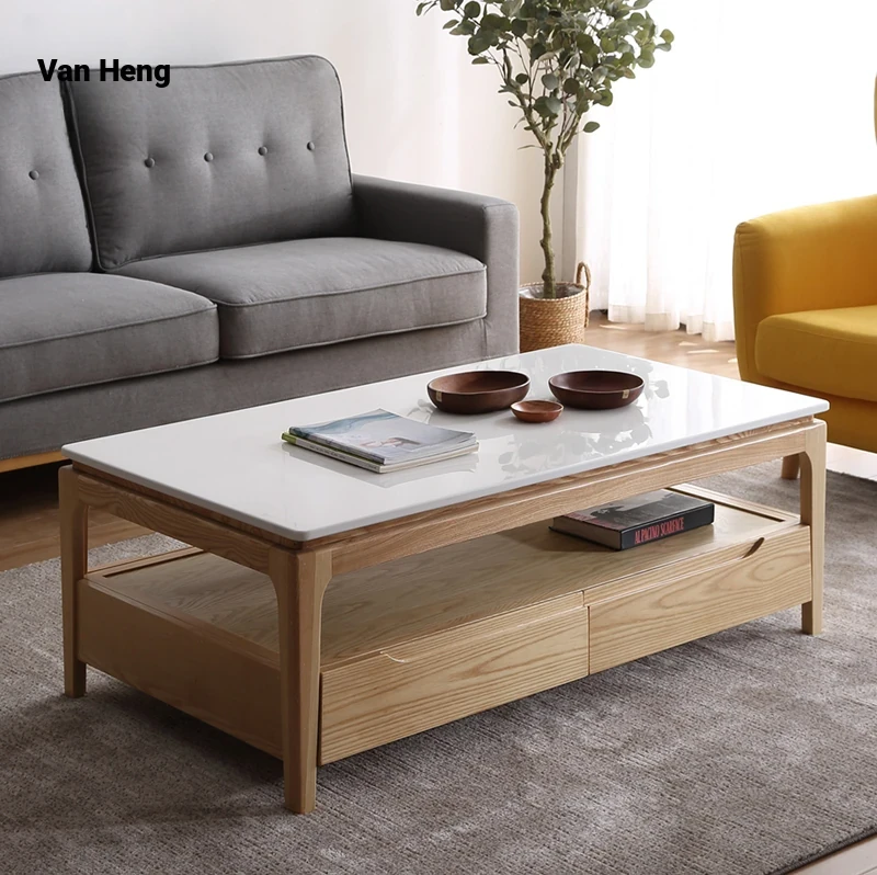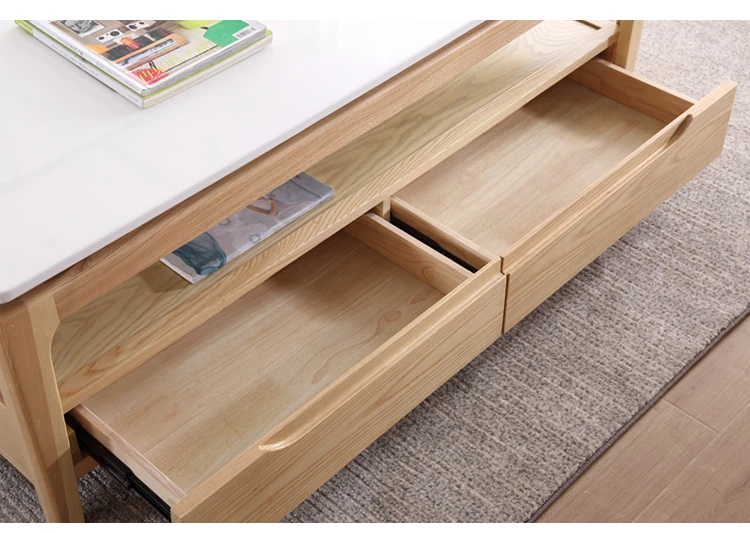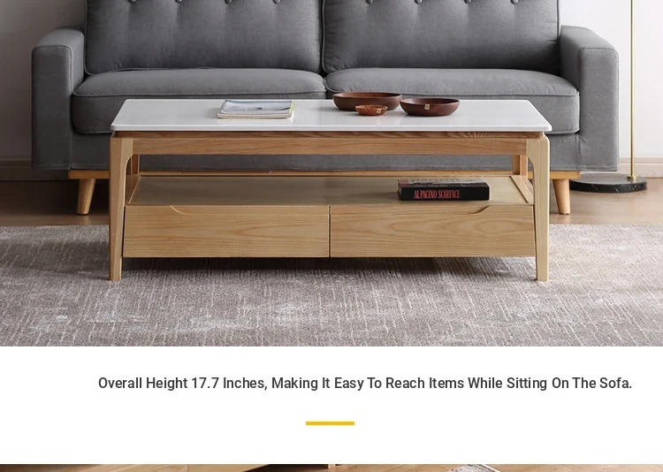 Scandinavian Style Marble Coffee Table and TV Stand Set - Minimalist Modern Design for Small Spaces, Featuring Natural Wood Color and Solid Rock Plate Coffee Table