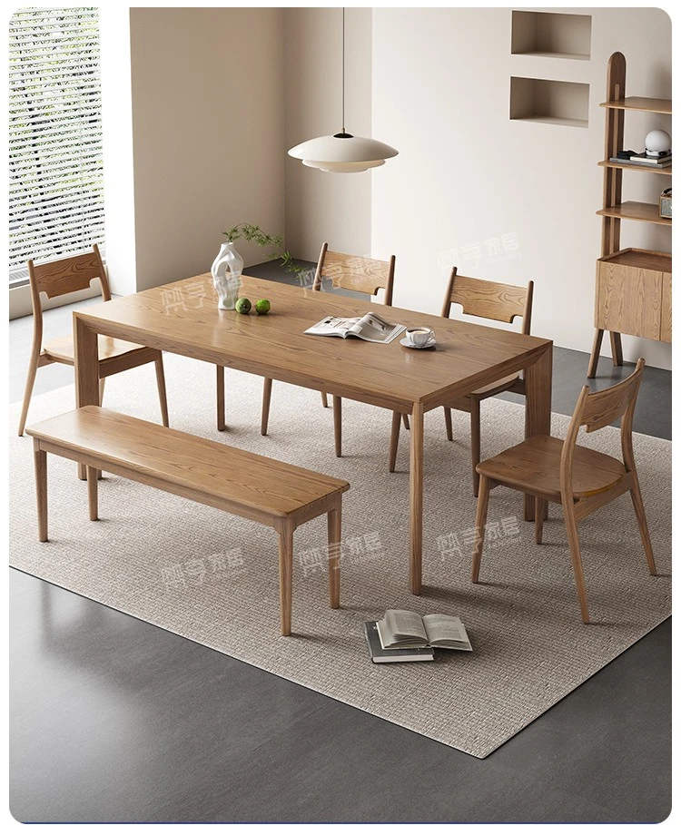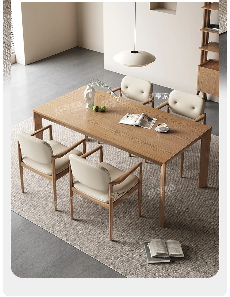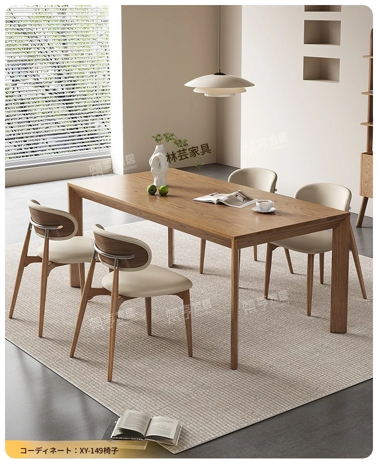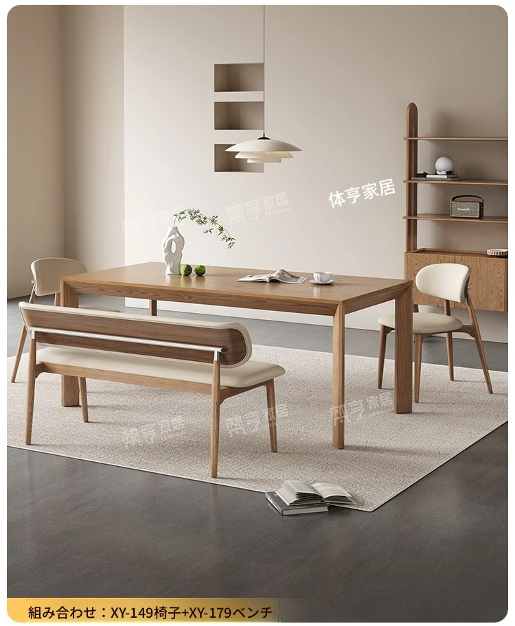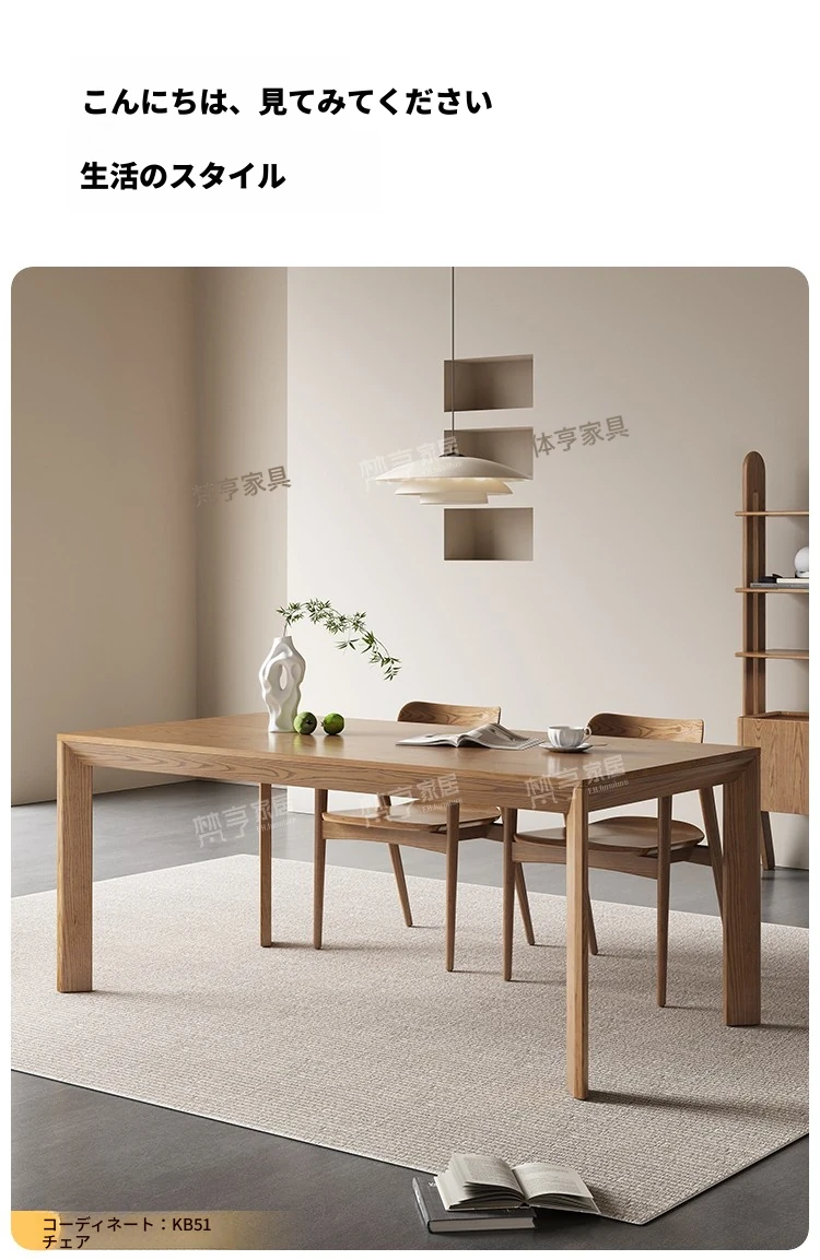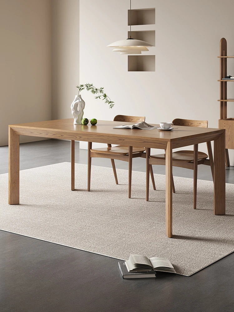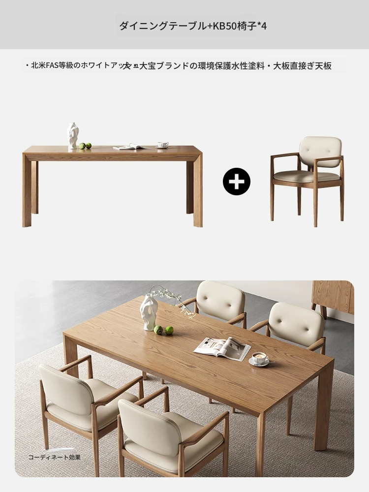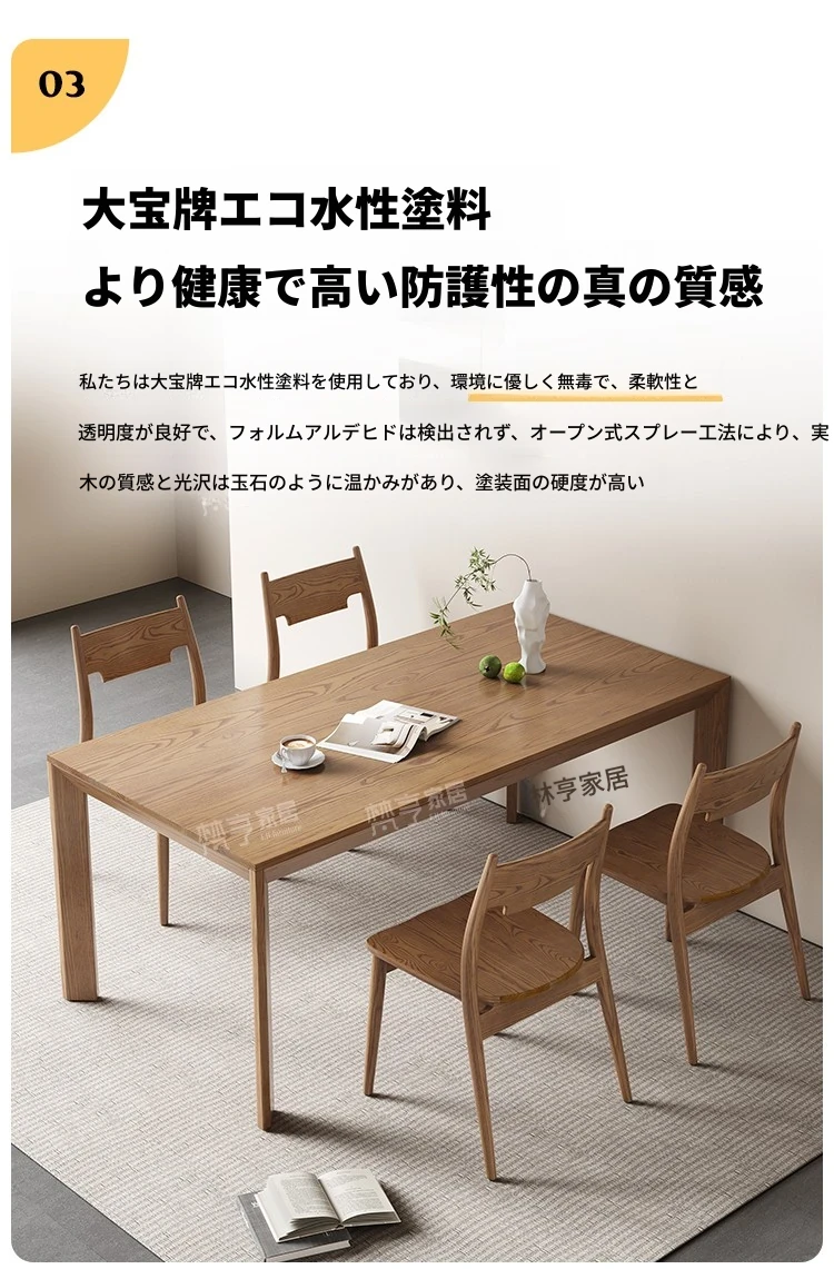 全実木の北欧スタイル長方形ダイニングテーブル - ホワイトアッシュ製、大型デスクとしても使える一体型デザイン!家庭用リビングにぴったりのスタイリッシュで機能的なテーブル。
