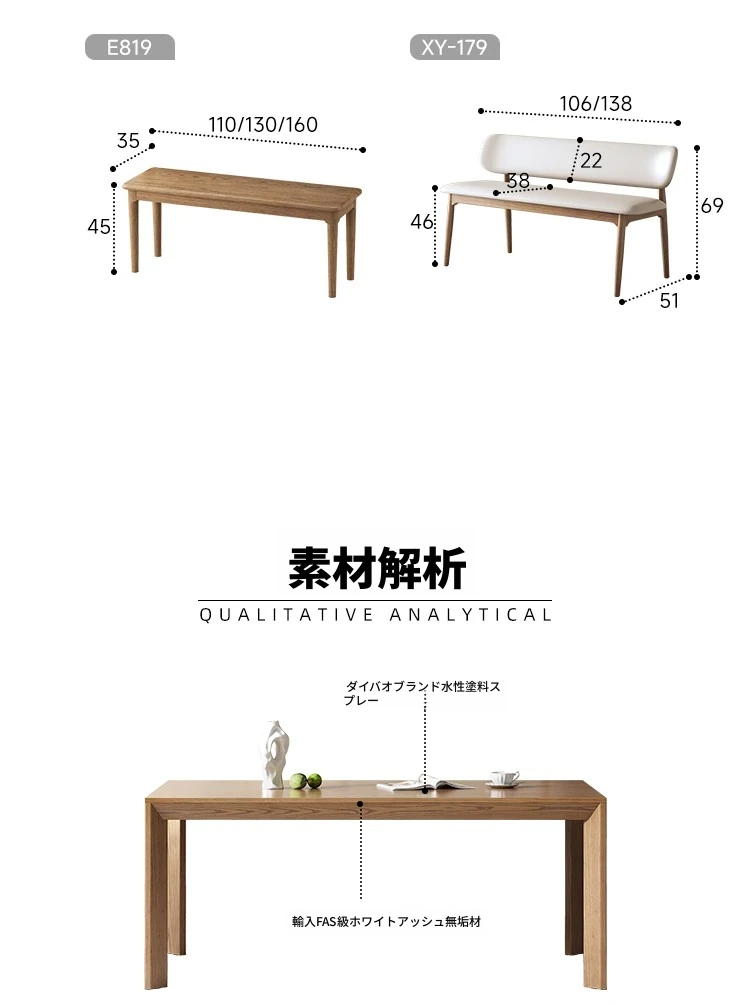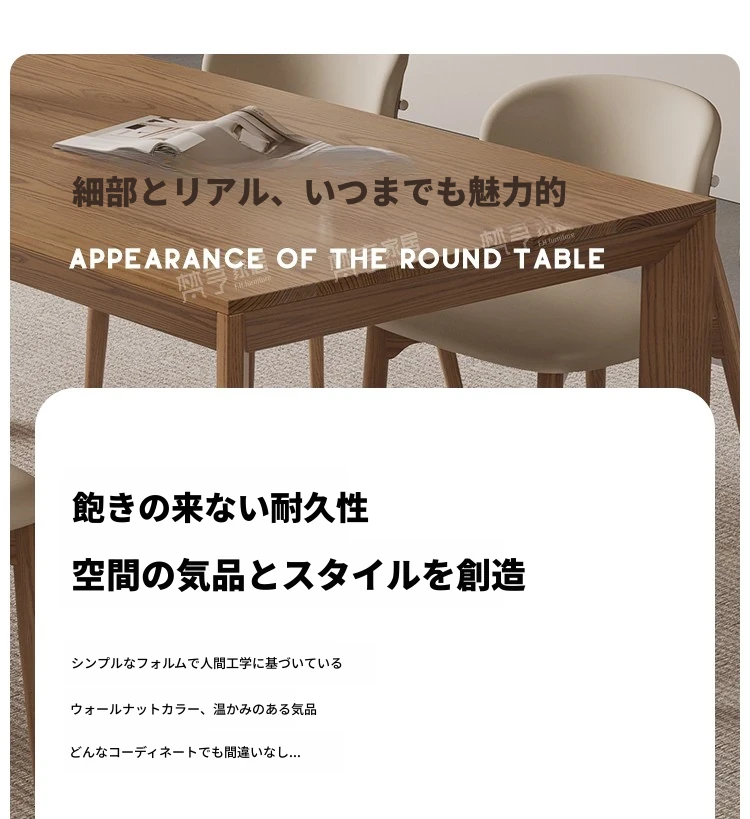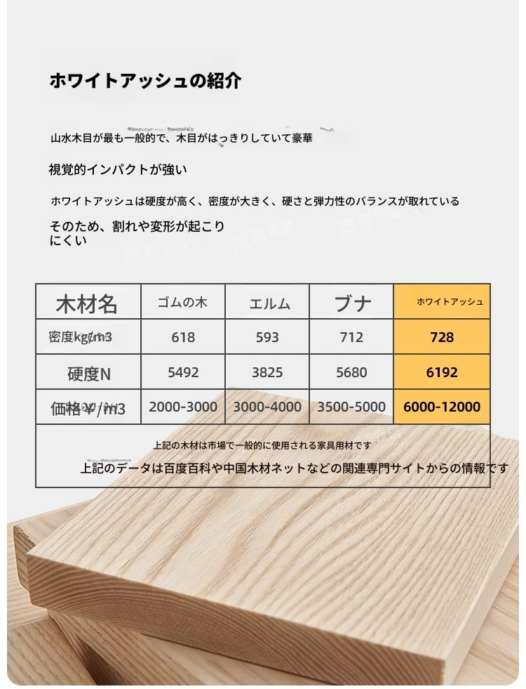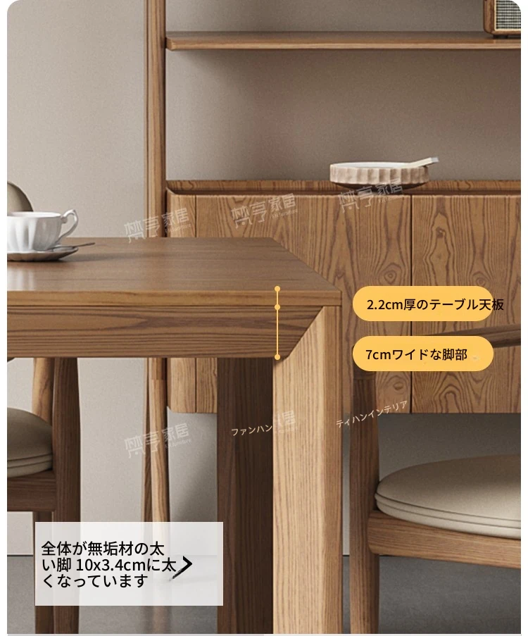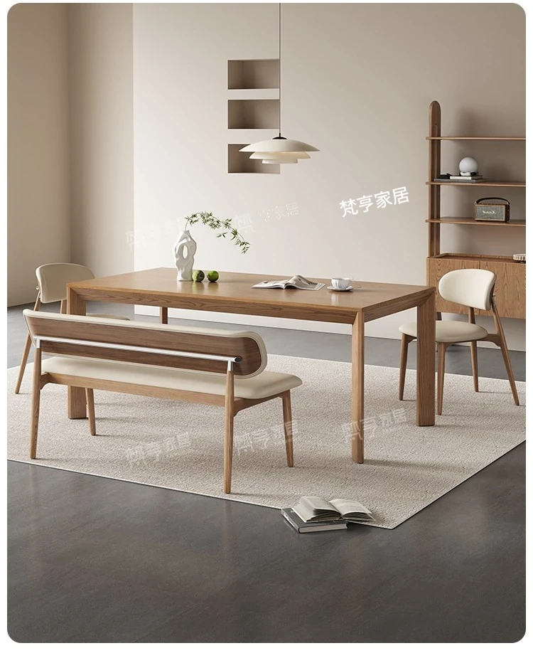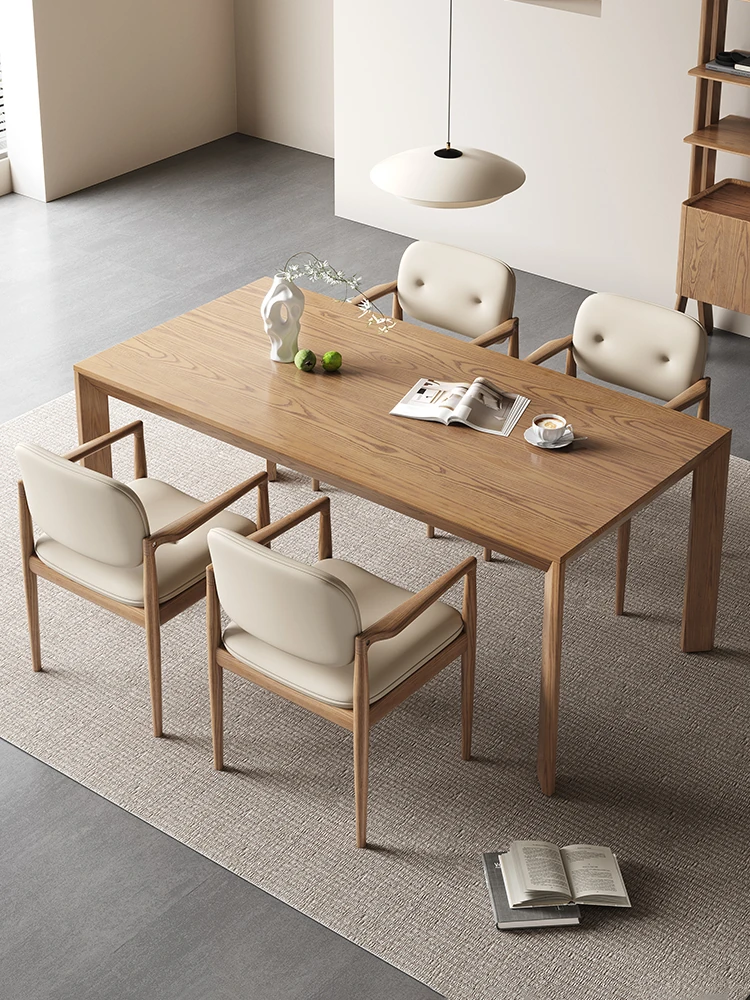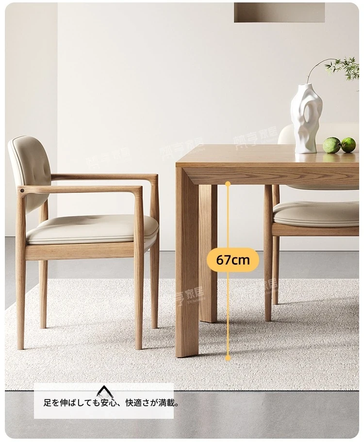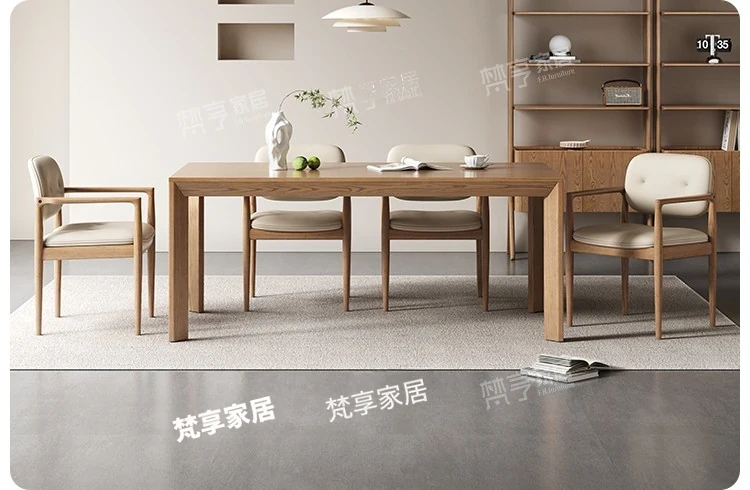 全実木の北欧スタイル長方形ダイニングテーブル - ホワイトアッシュ製、大型デスクとしても使える一体型デザイン!家庭用リビングにぴったりのスタイリッシュで機能的なテーブル。